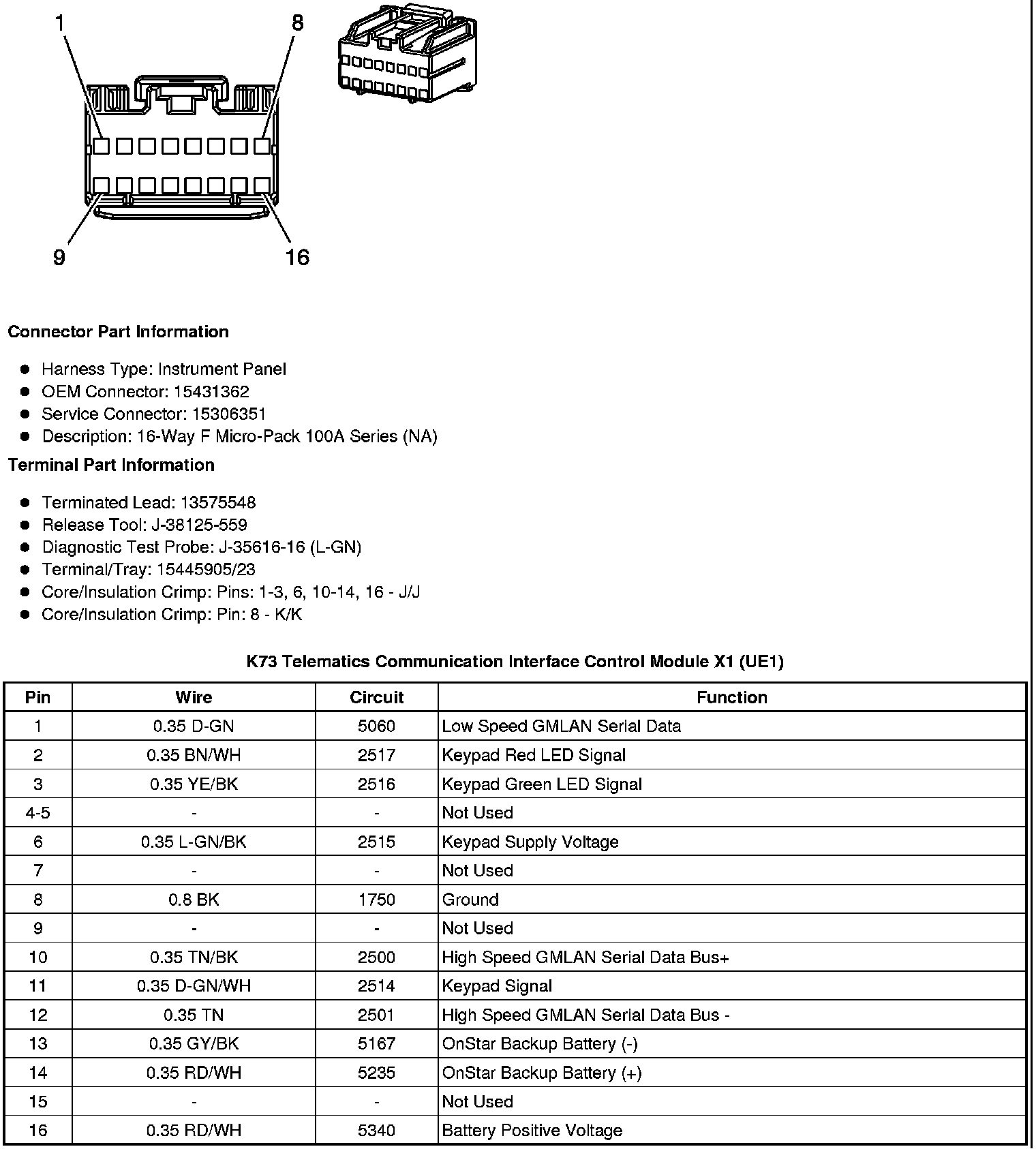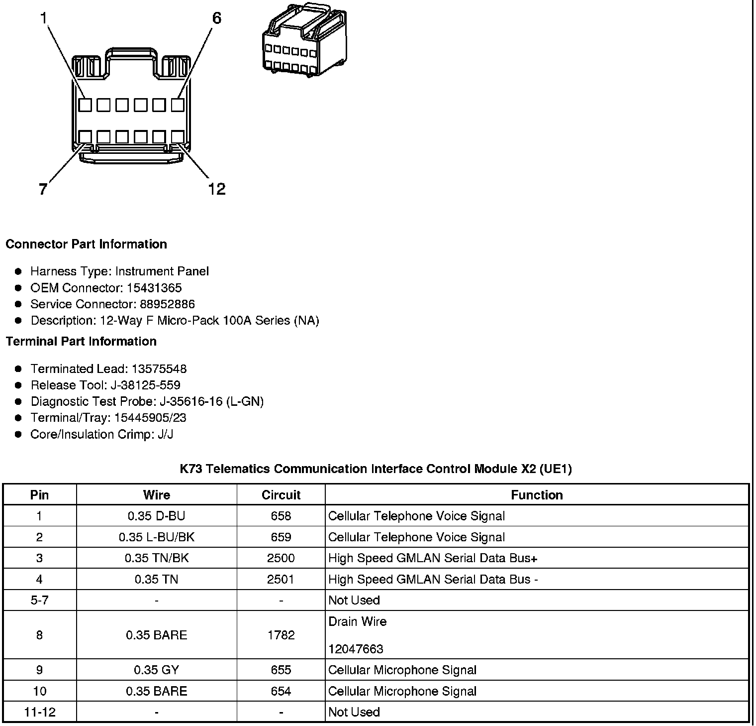 K73 Telematics Communication Interface Control Module X2 (UE1)