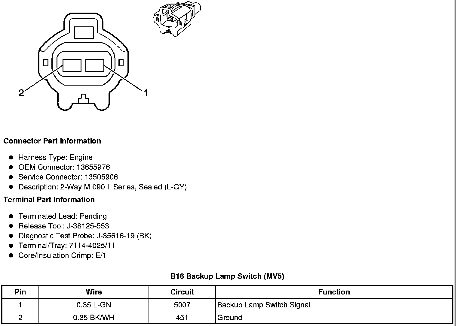 B16 Backup Lamp Switch (MV5)