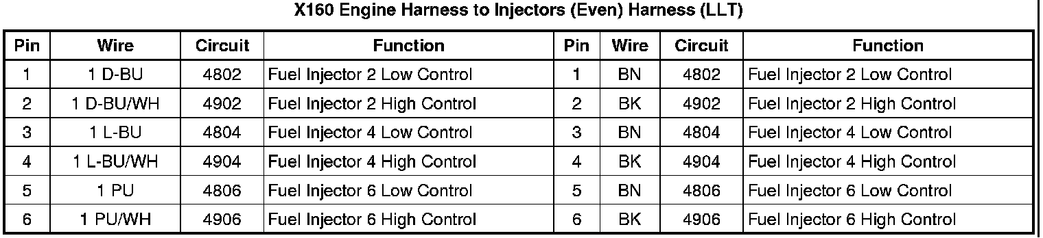 X160 Engine Harness to Injectors (Even) Harness (LLT)