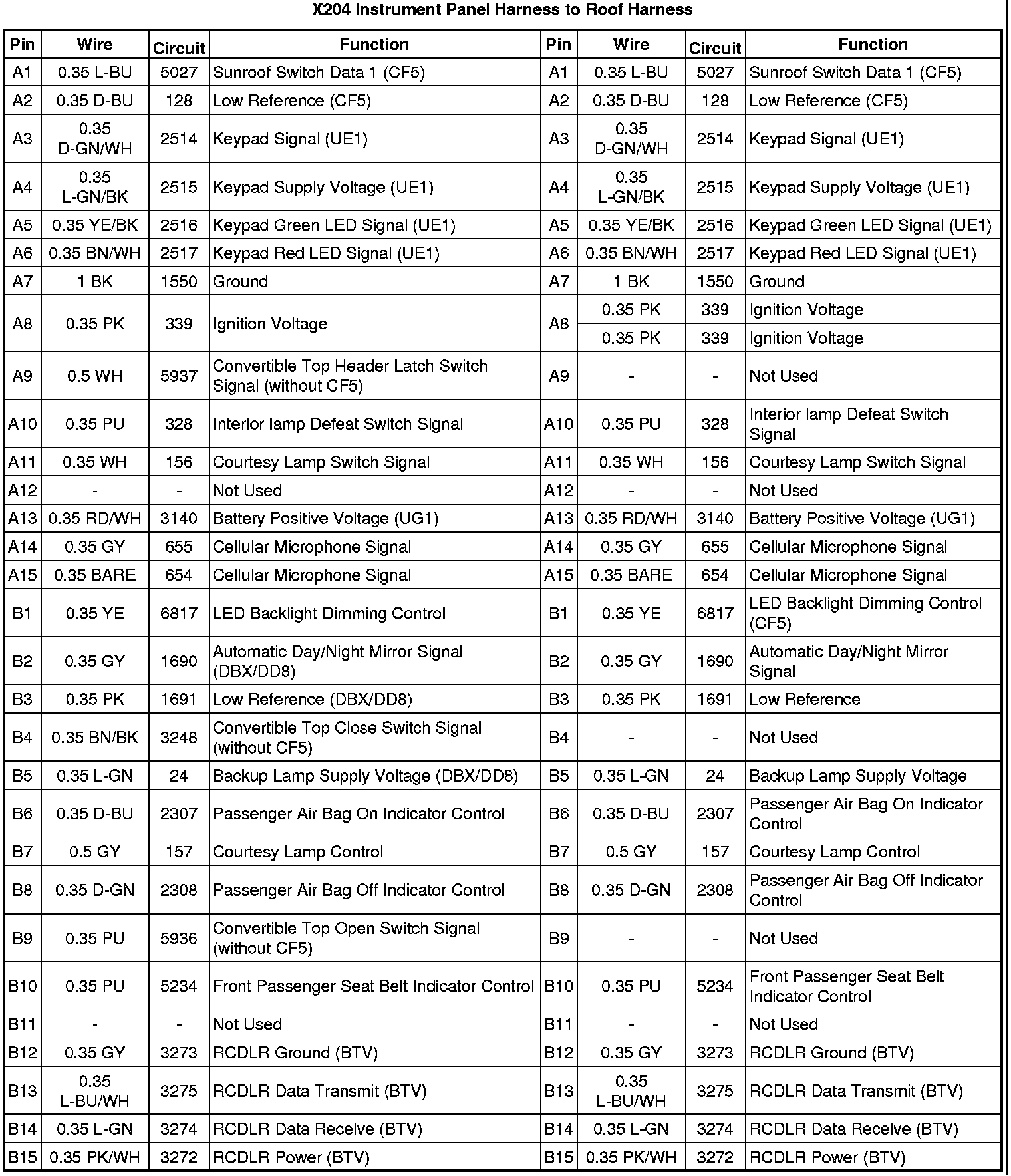X204 Instrument Panel Harness to Roof Harness