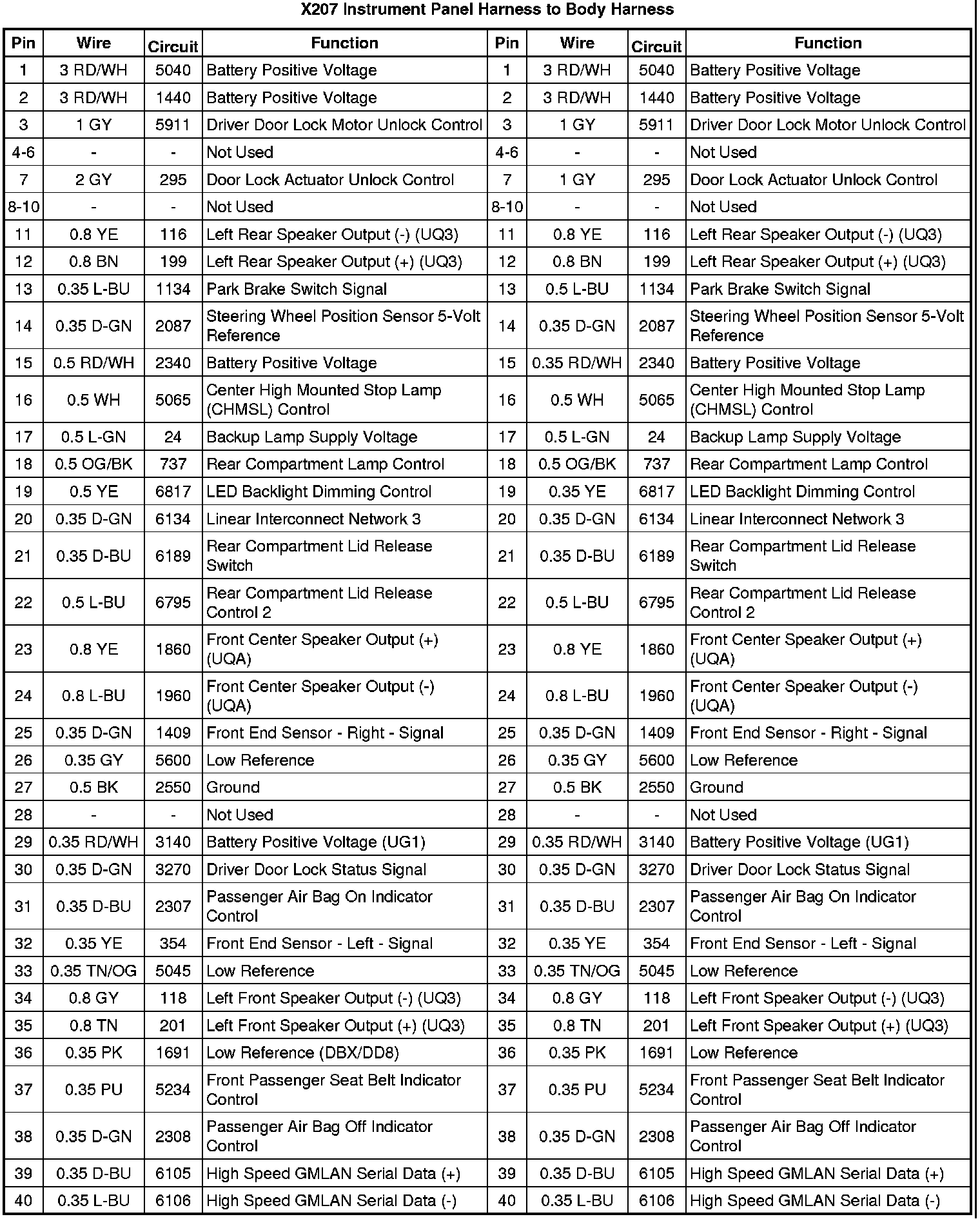 X207 Instrument Panel Harness to Body Harness
