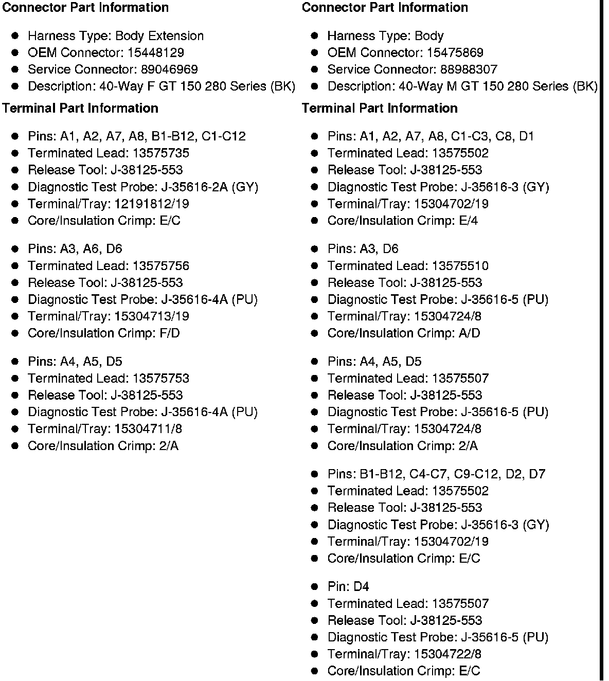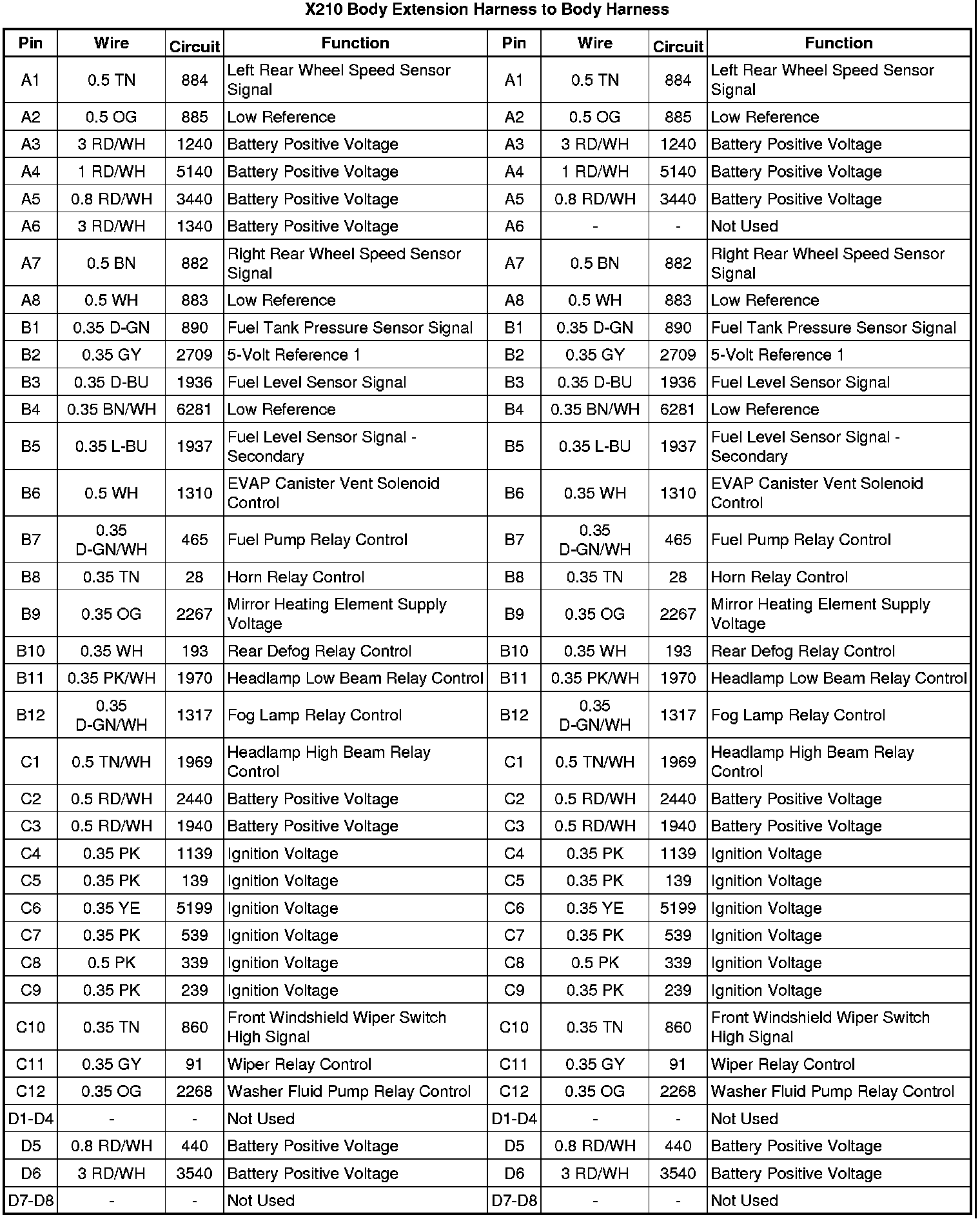 X210 Body Extension Harness to Body Harness
