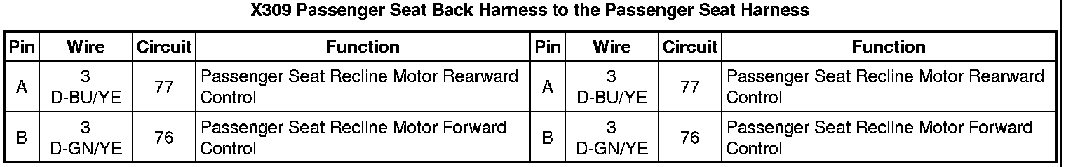 X309 Passenger Seat Back Harness to the Passenger Seat Harness