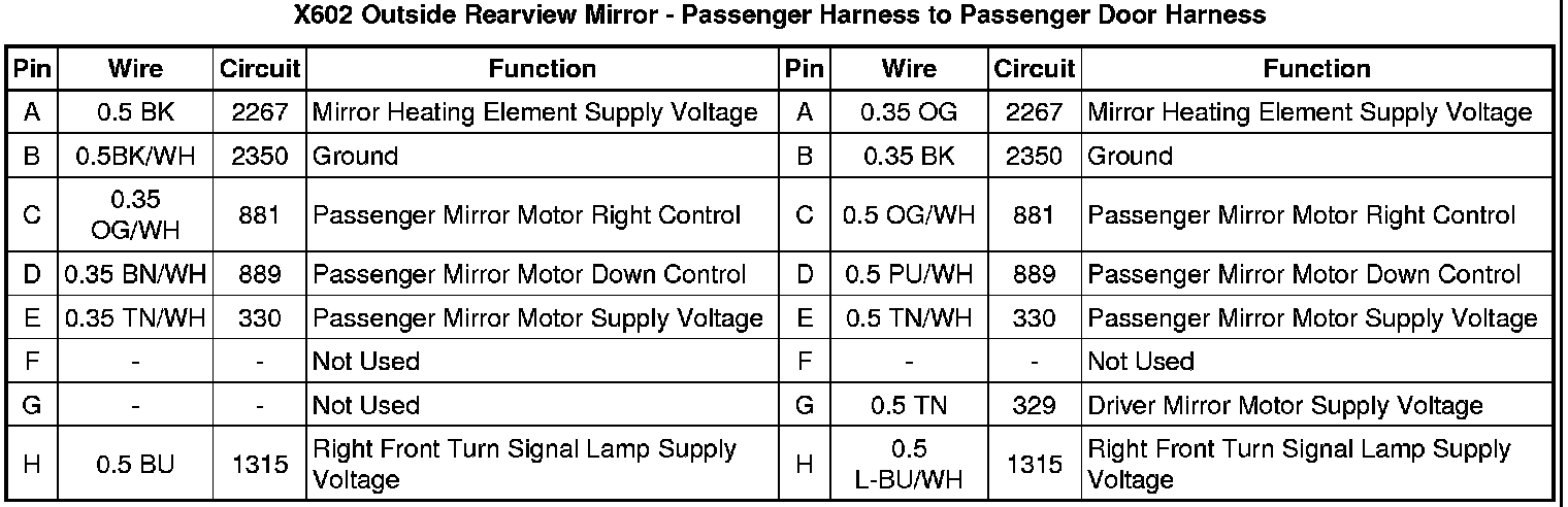X602 Outside Rearview Mirror - Passenger Harness to Passenger Door Harness