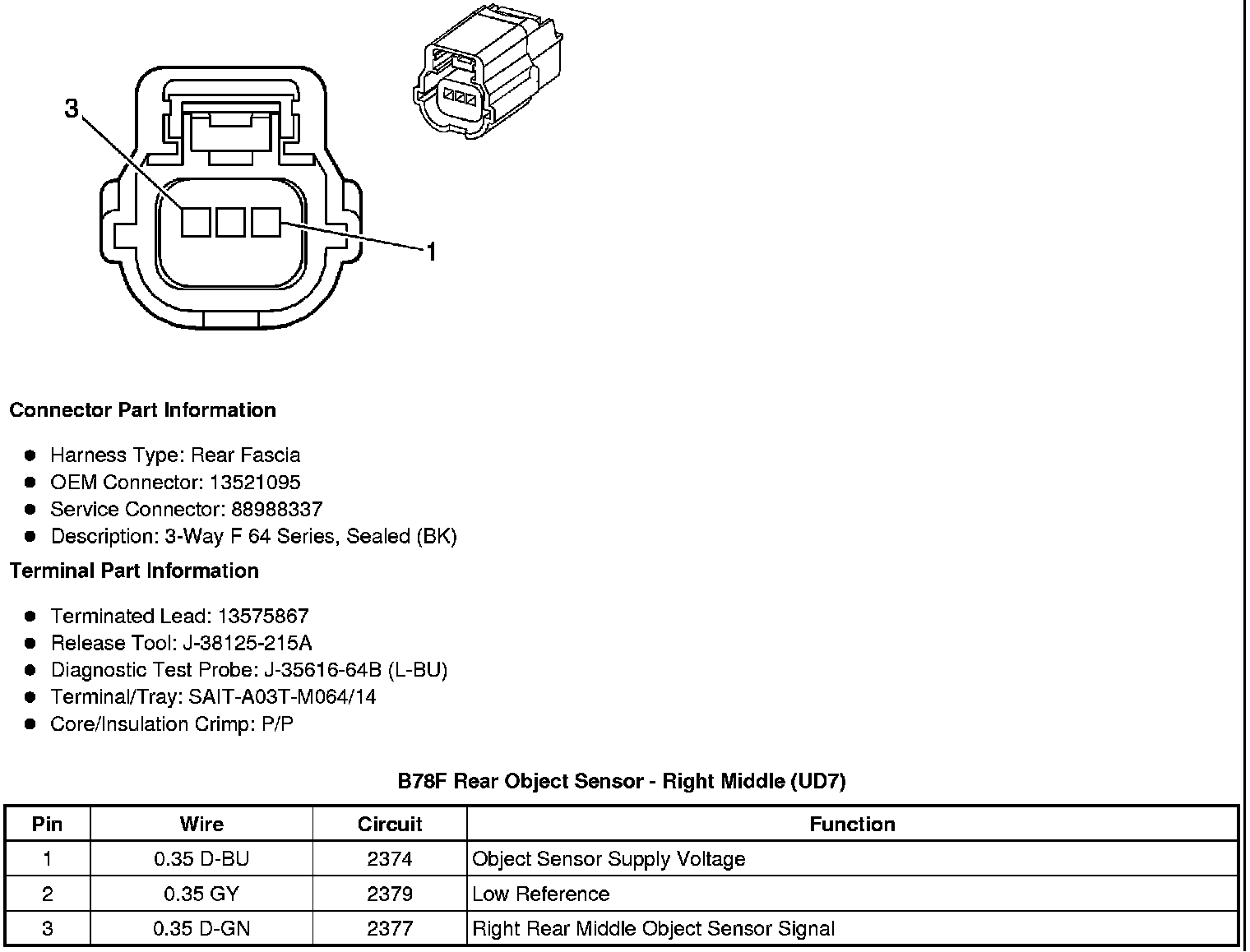 B78F Rear Object Sensor - Right Middle (UD7)