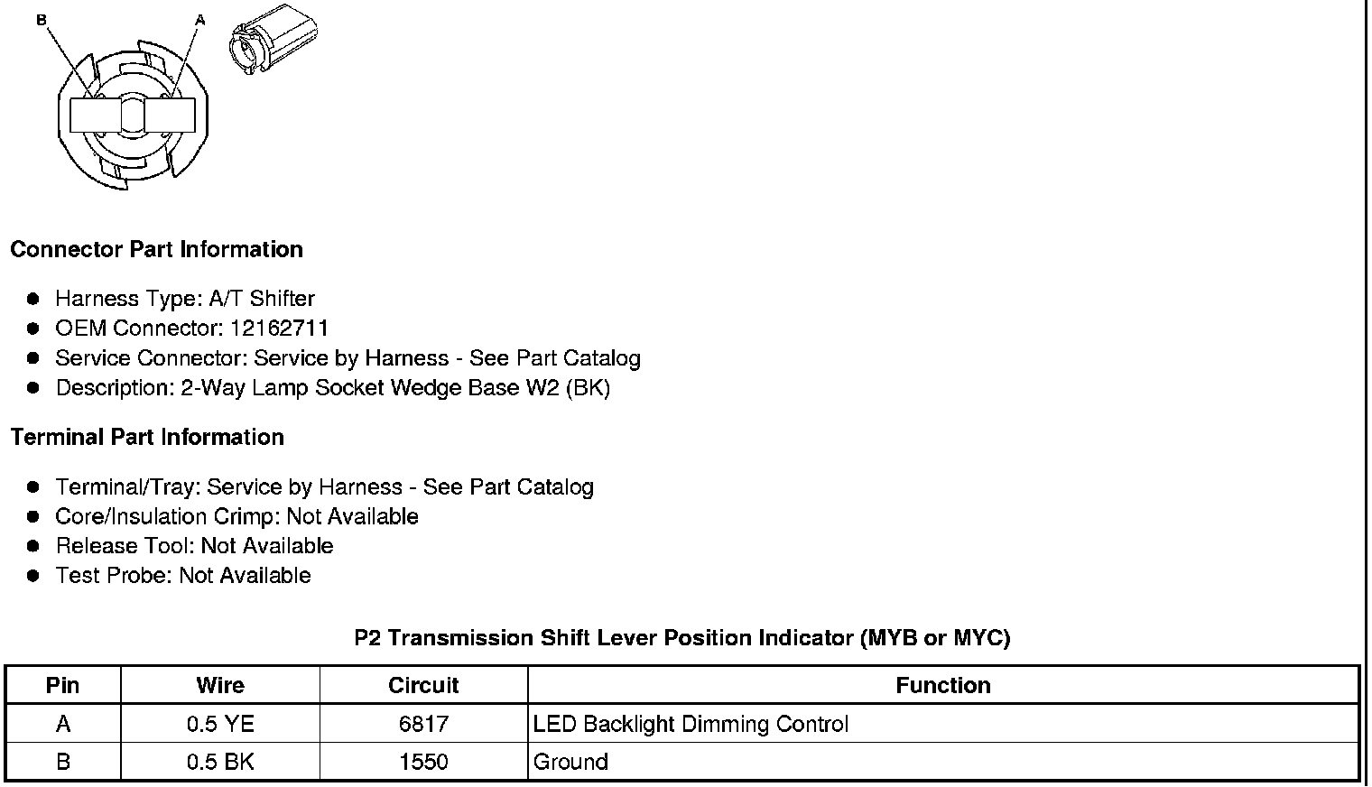 P2 Transmission Shift Lever Position Indicator (MYB or MYC)