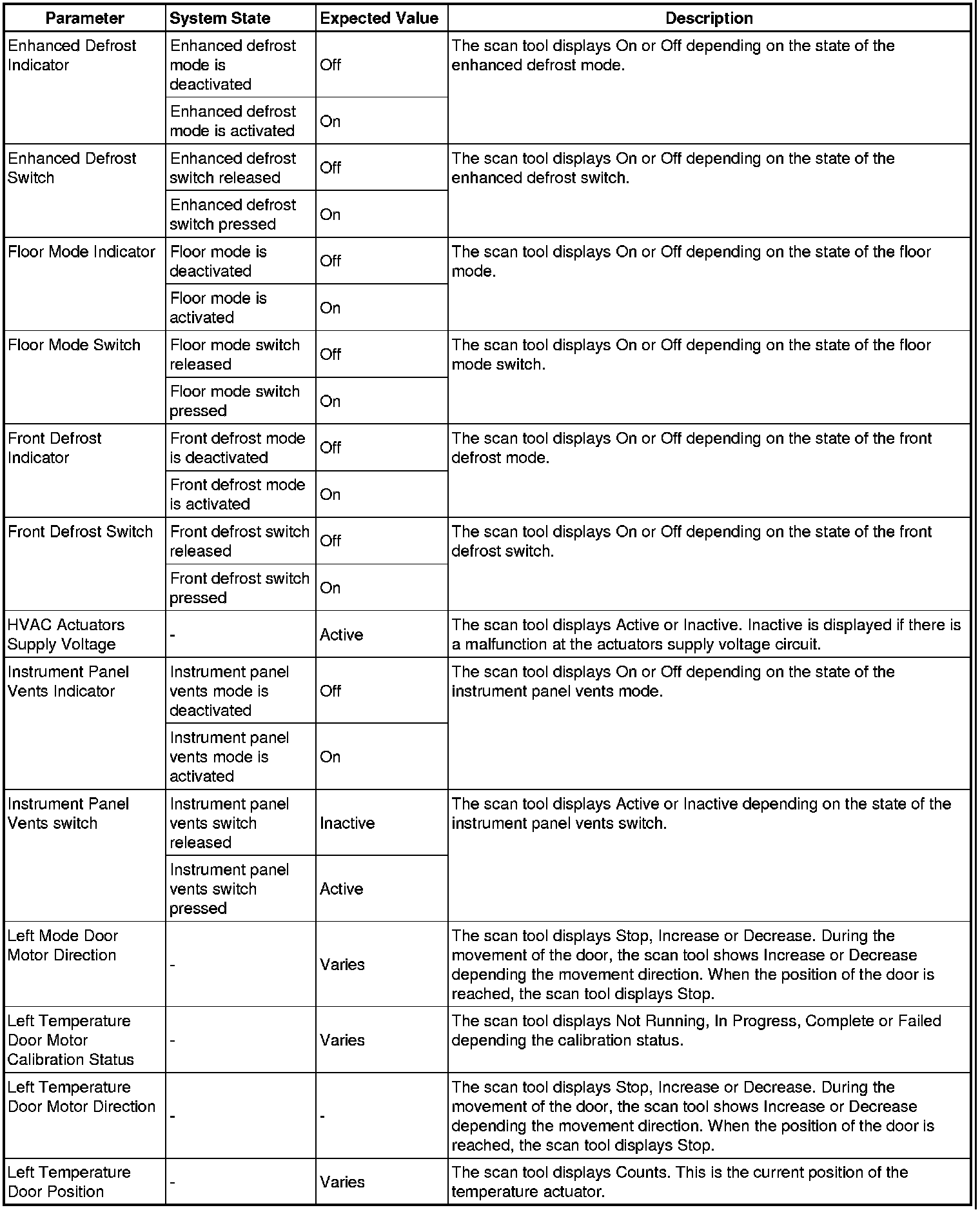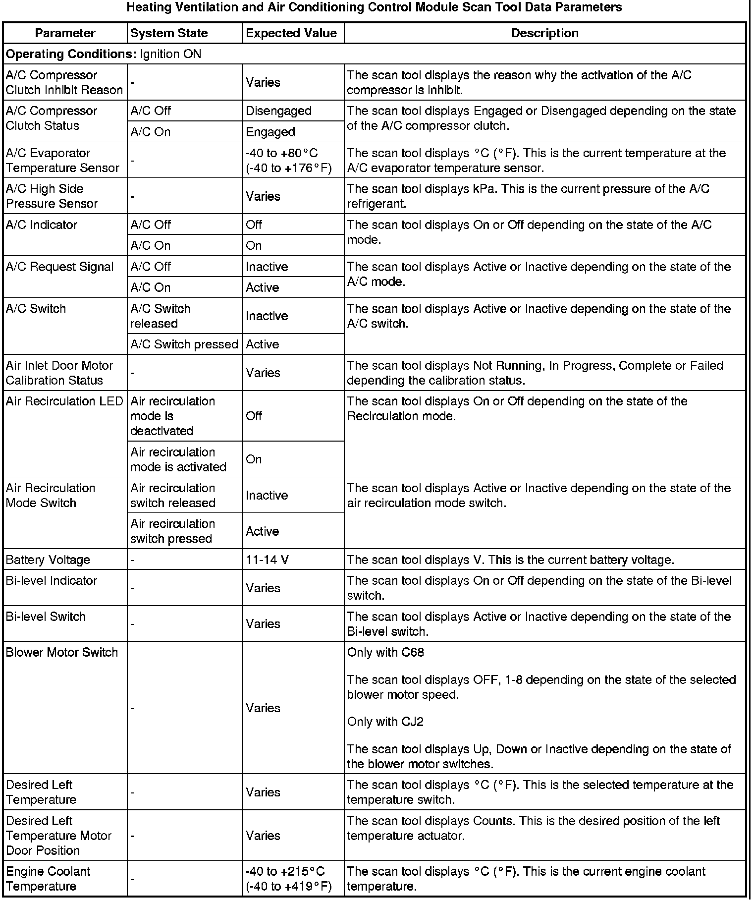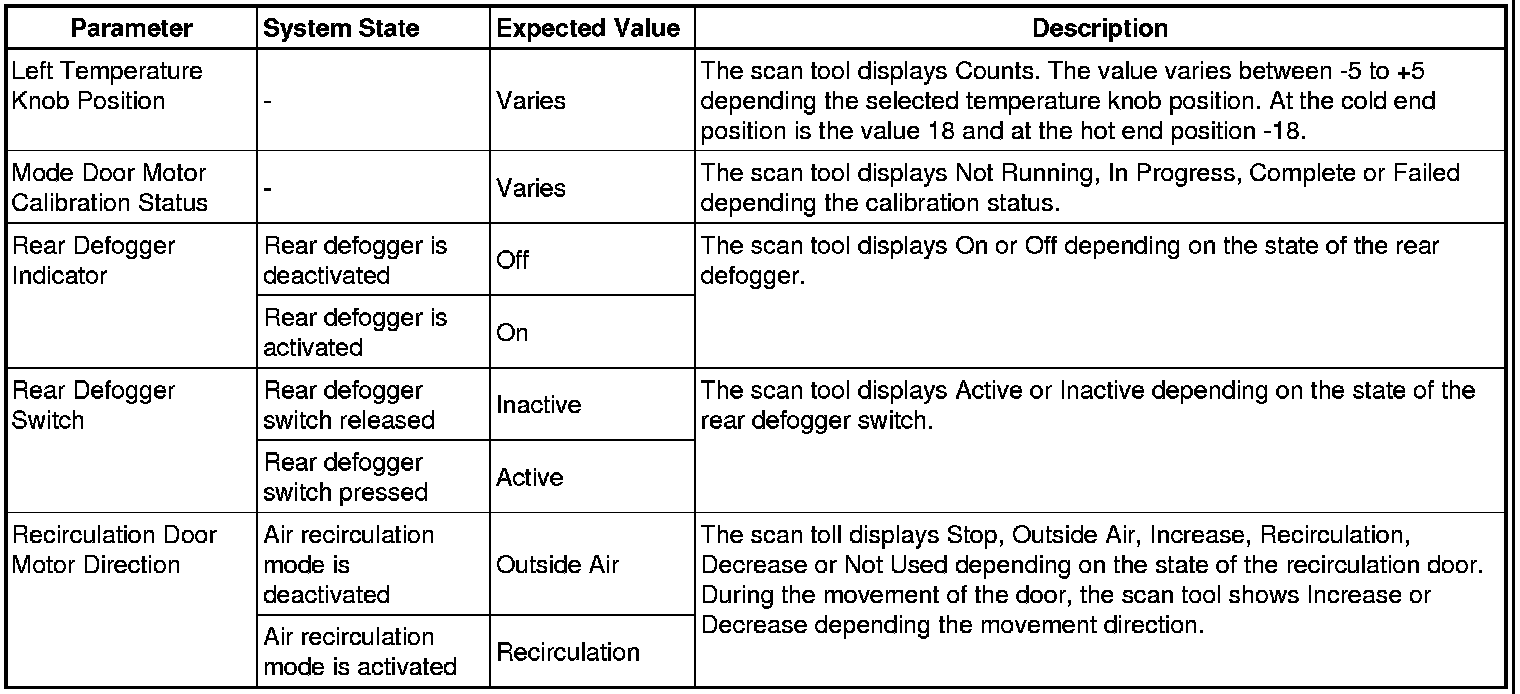 Heating, Ventilation and Air Conditioning Control Module Scan Tool Information