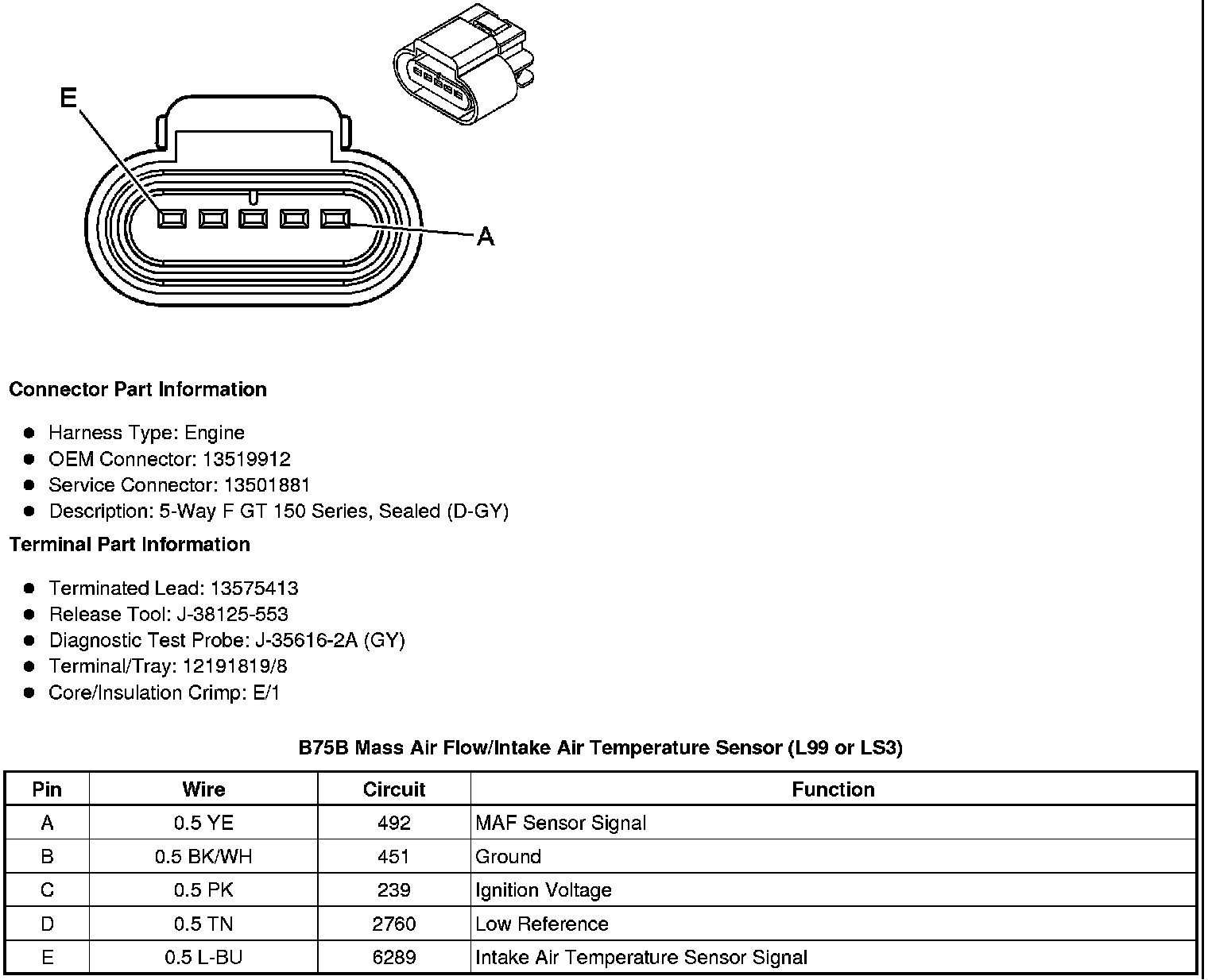 B75B Mass Air Flow/Intake Air Temperature Sensor (LLT)