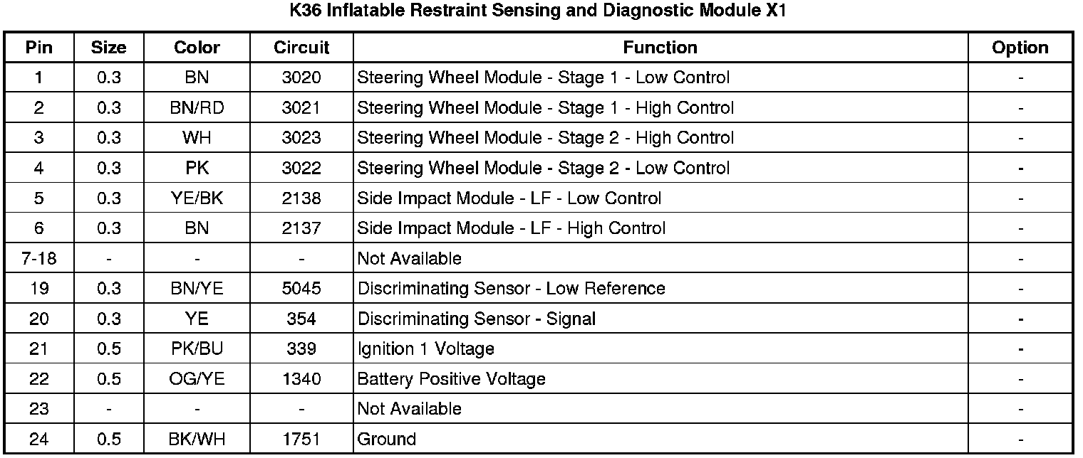 K36 Inflatable Restraint Sensing and Diagnostic Module X1