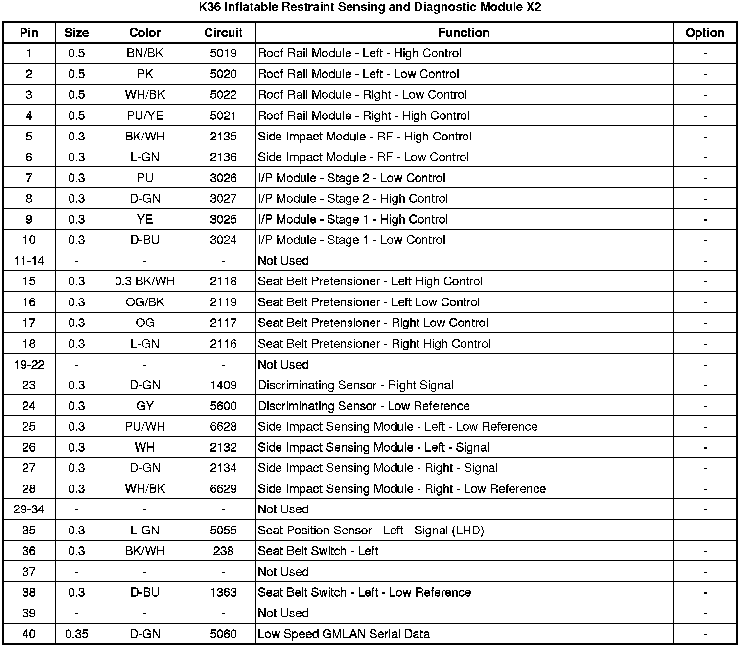 K36 Inflatable Restraint Sensing and Diagnostic Module X2
