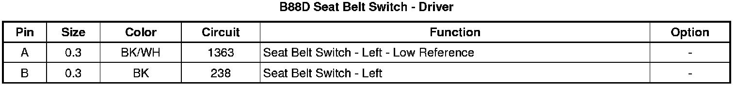 B88D Seat Belt Switch - Driver