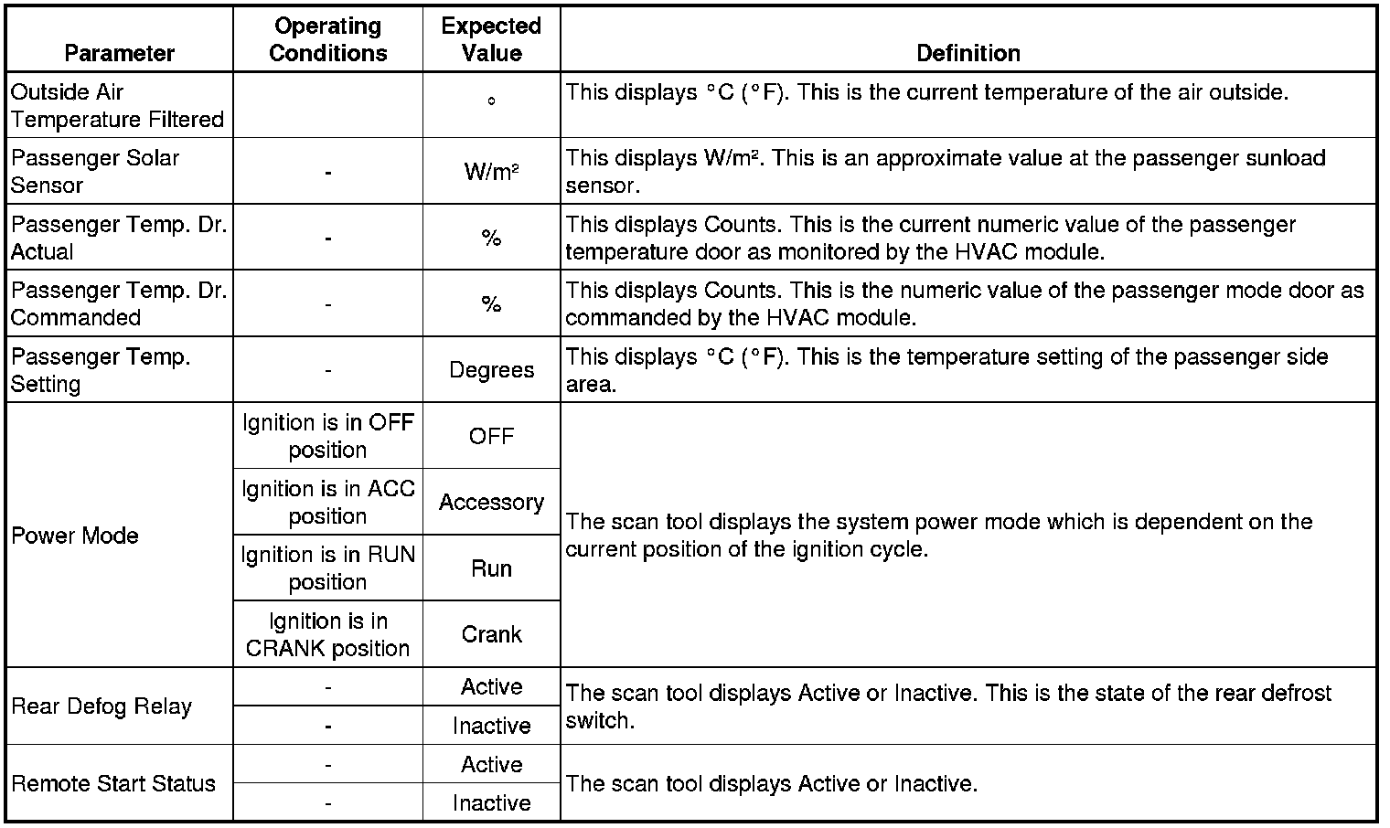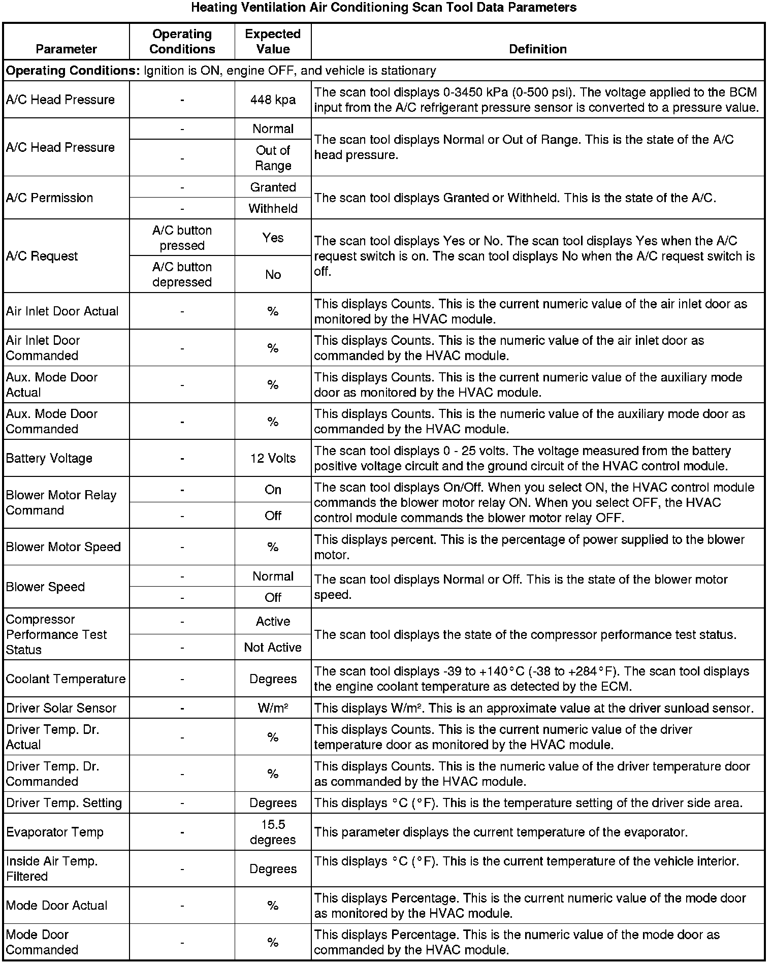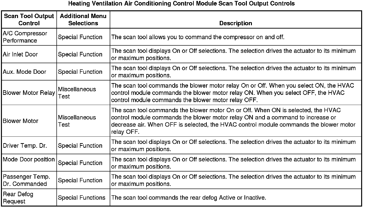 Heating, Ventilation and Air Conditioning Control Module Scan Tool Information