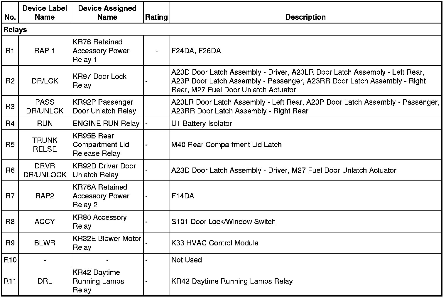 R5 TRUNK RELSE KR95B Rear Compartment Lid Release Relay