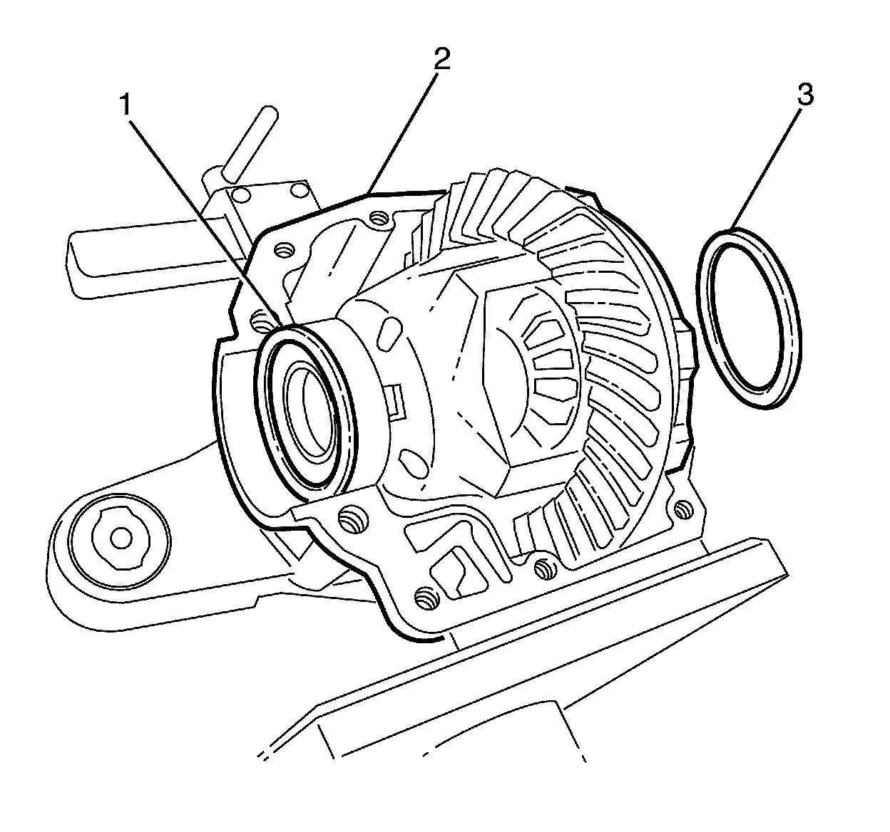 26. Remove the tail bearing from the differential housing (3).