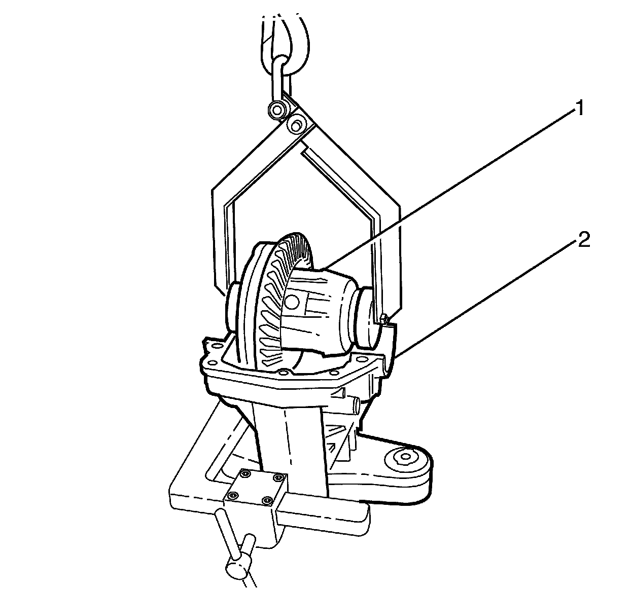 12. Position the differential (1) onto a suitable holding device (2).