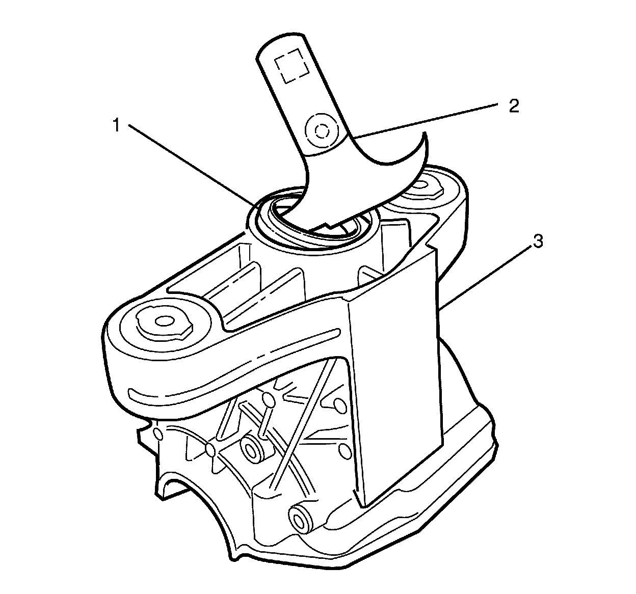 Note: Use DT-48725 - pinion head bearing cup removal kit (1, 2) and DT-48726 - pinion head bearing cup remover (3) to remove the head bearing cup.