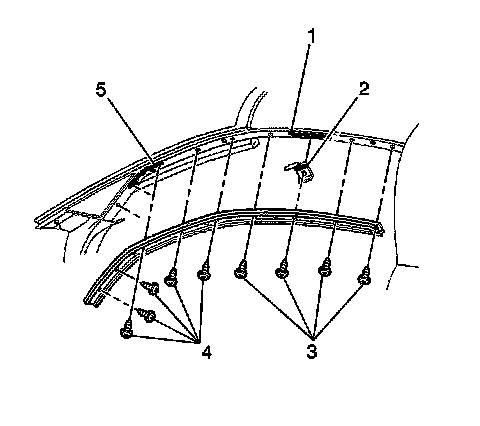 * Tighten the side retainer to windshield pillar screws (4) to 2.5 Nm (22 lb in).