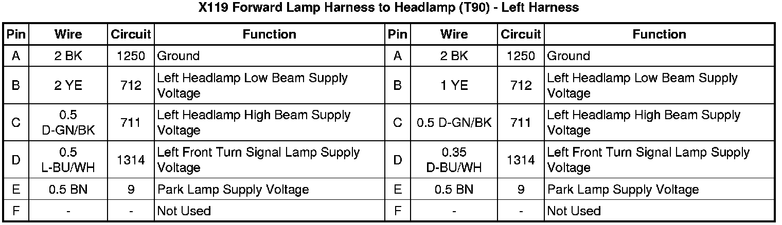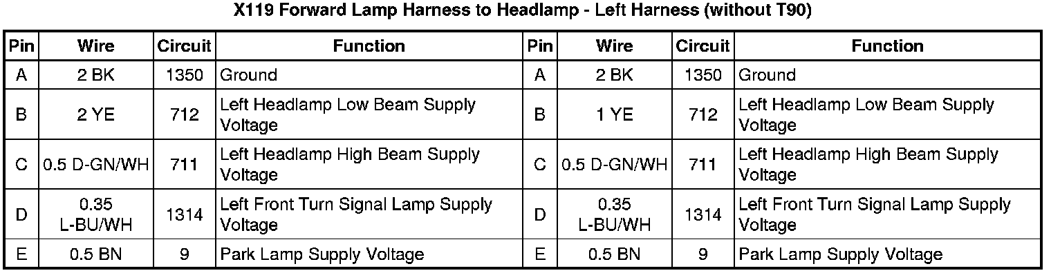 X119 Forward Lamp Harness to Headlamp (T90) - Left Harness