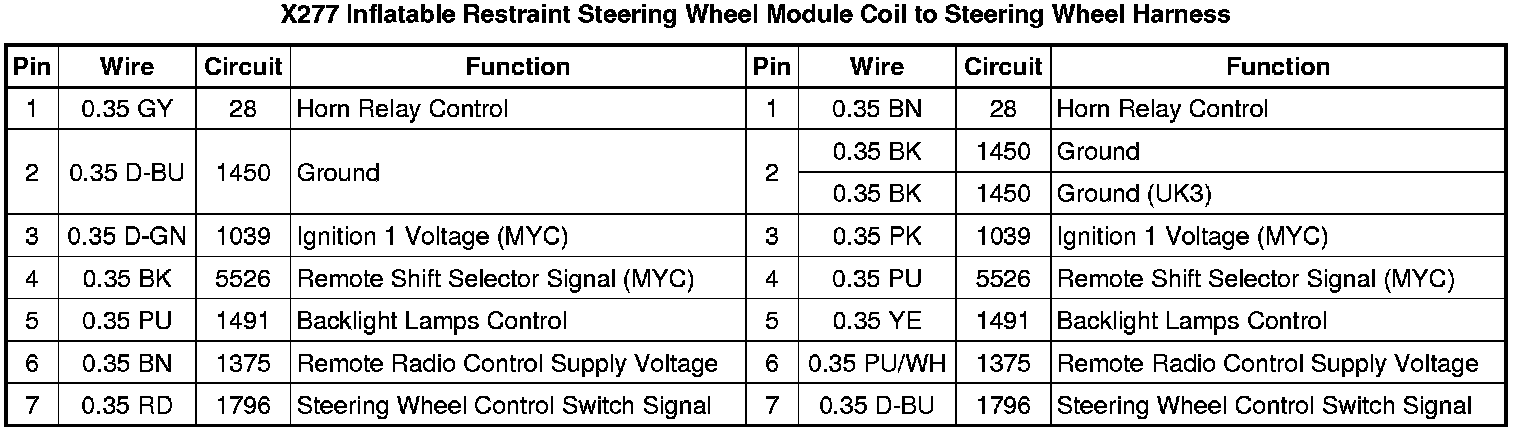 X277 Inflatable Restraint Steering Wheel Module Coil to Steering Wheel Harness