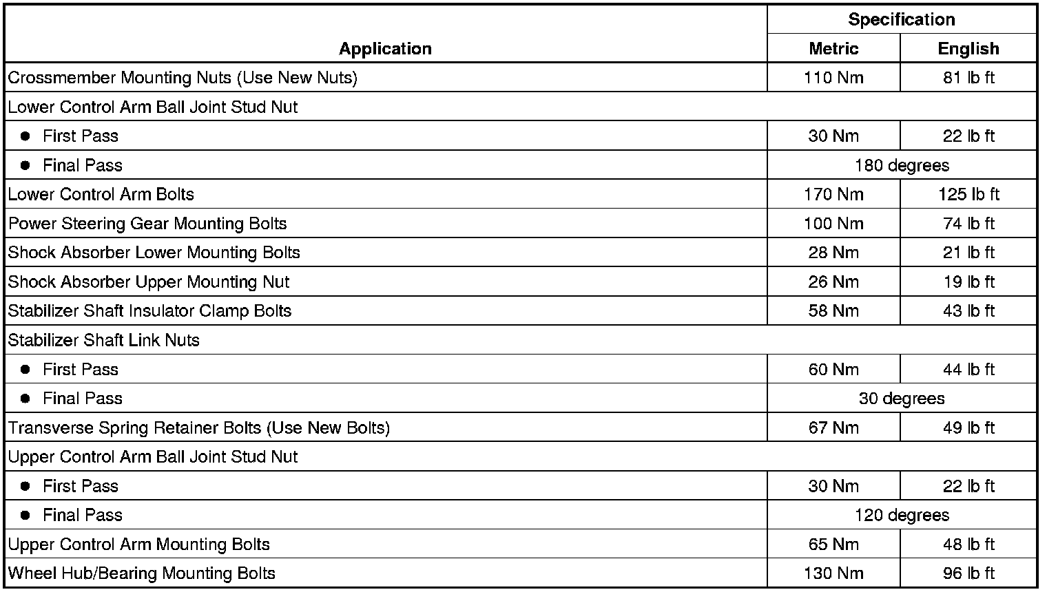 Fastener Tightening Specifications