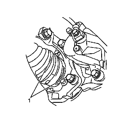 4. Remove the brake caliper bracket bolts (1) and discard.