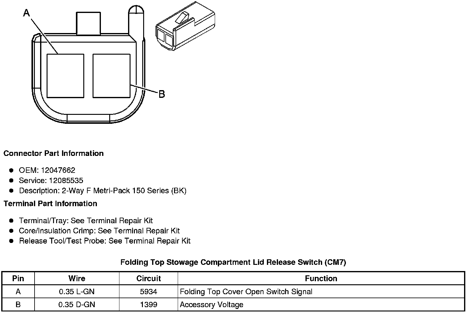 Folding Top Stowage Compartment Lid Release Switch (CM7)