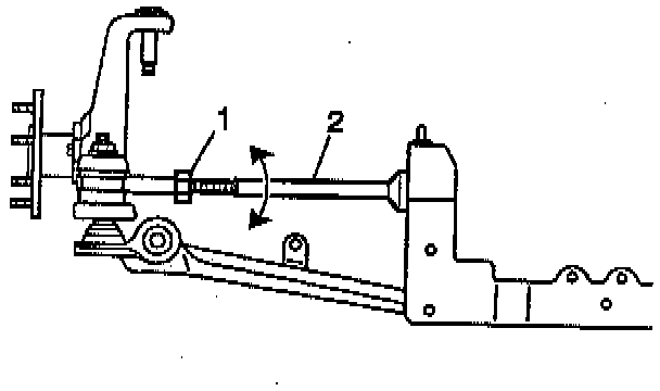 2. Loosen the rear suspension adjustment link lock nut (1).