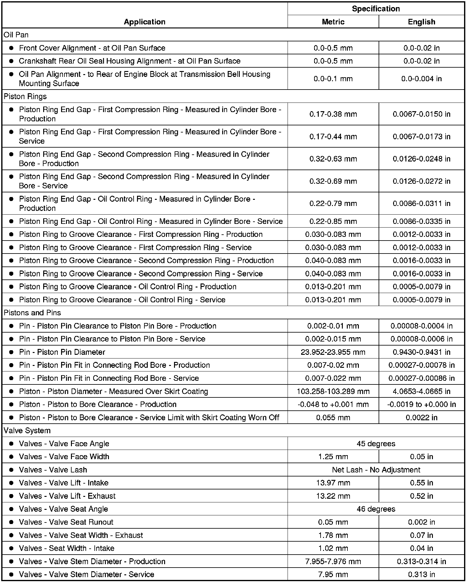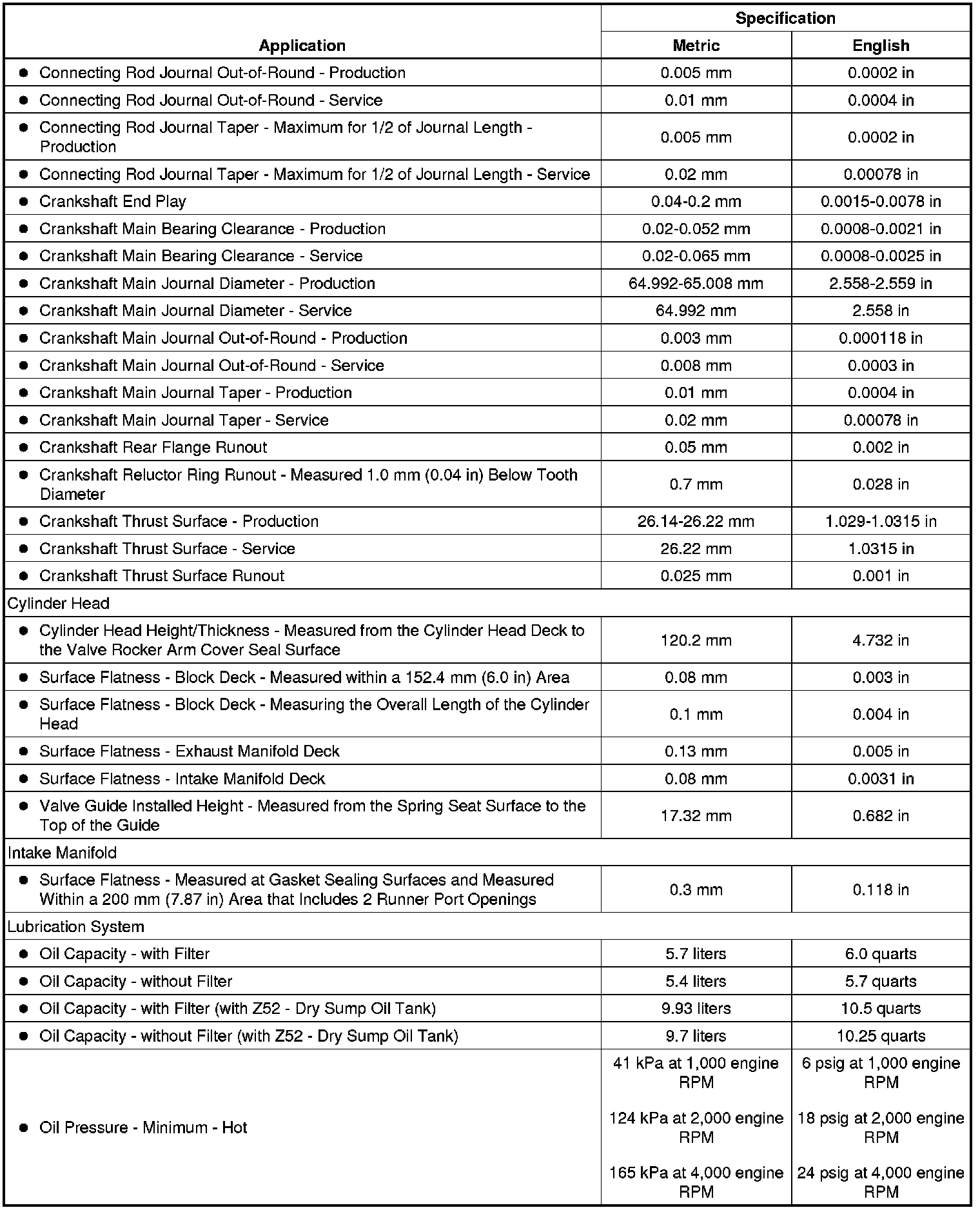Engine Mechanical Specifications (6.2L LS3)