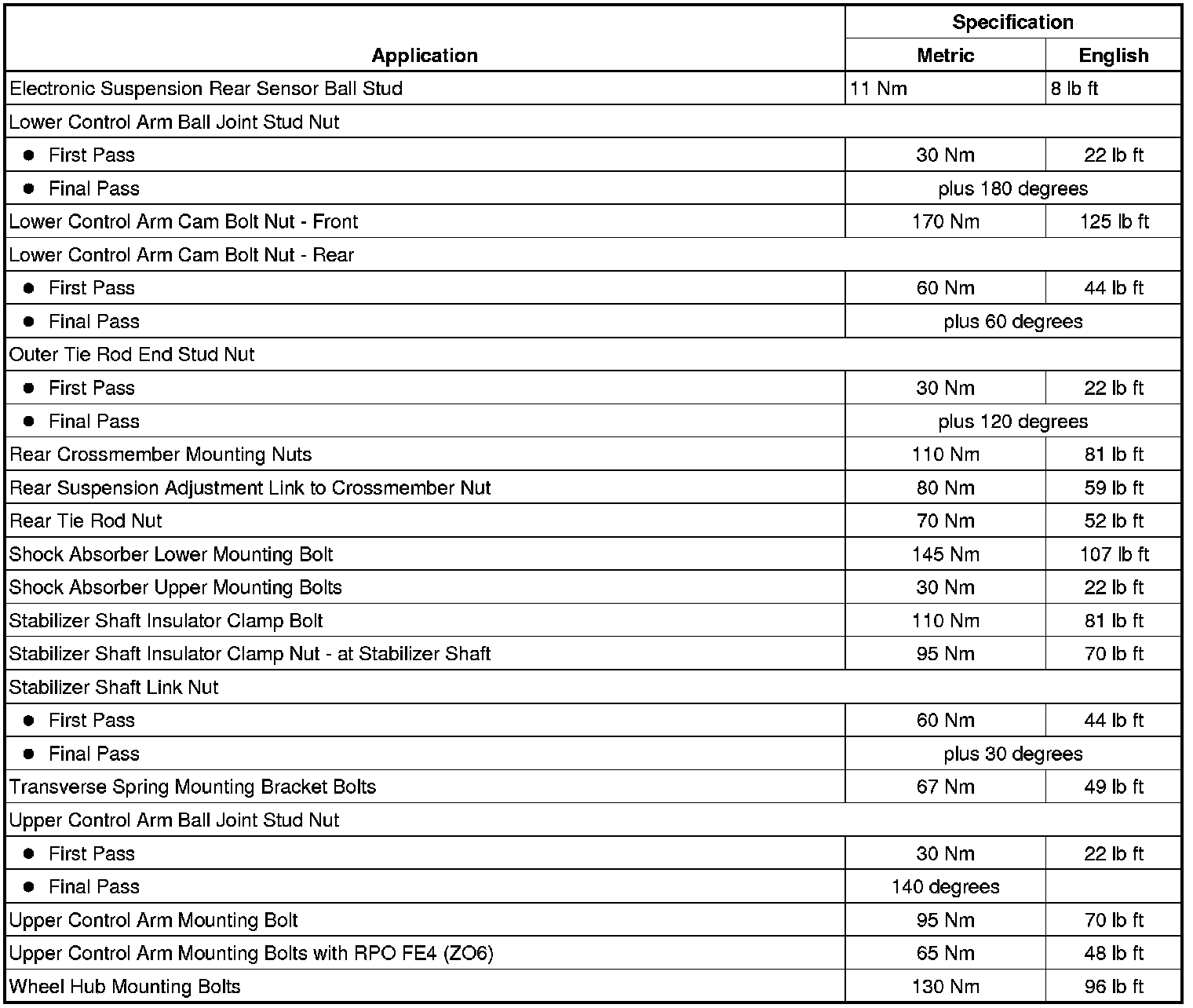 Fastener Tightening Specifications