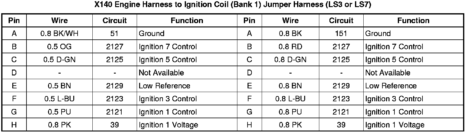 X140 Engine Harness to Ignition Coil (Bank 1) Jumper Harness (LS3 or LS7)