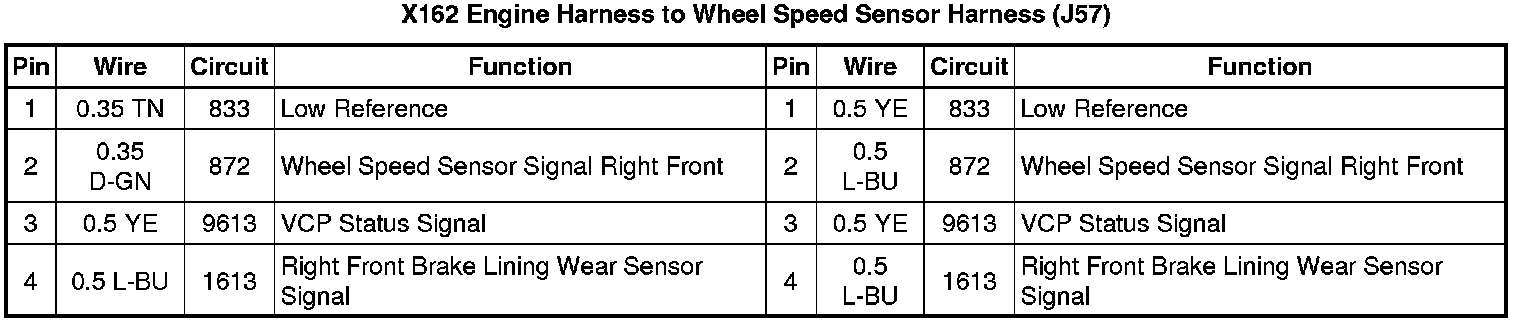 X162 Engine Harness to Wheel Speed Sensor Harness (J57)