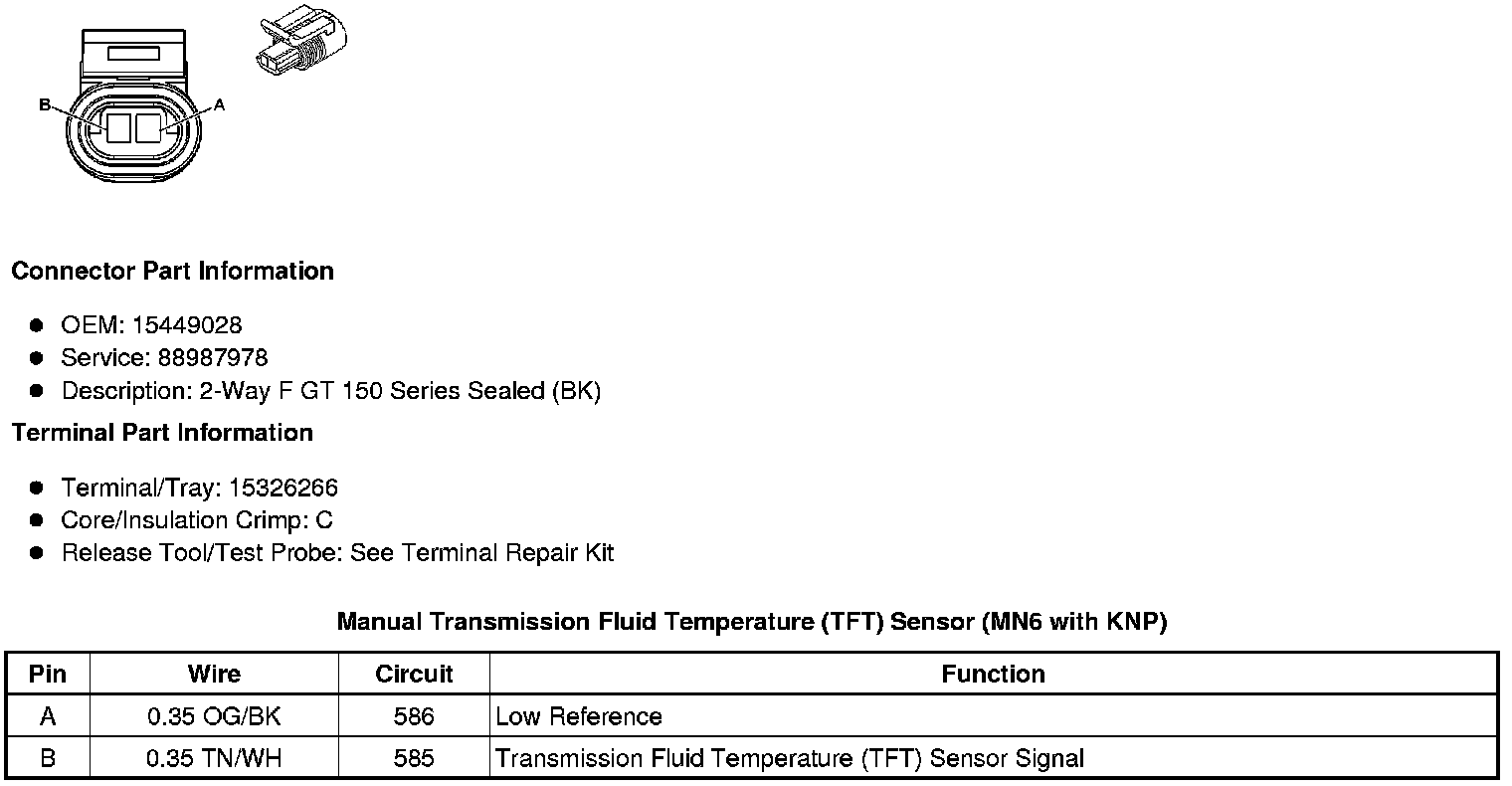 Manual Transmission Fluid Temperature (TFT) Sensor (MN6 with KNP)