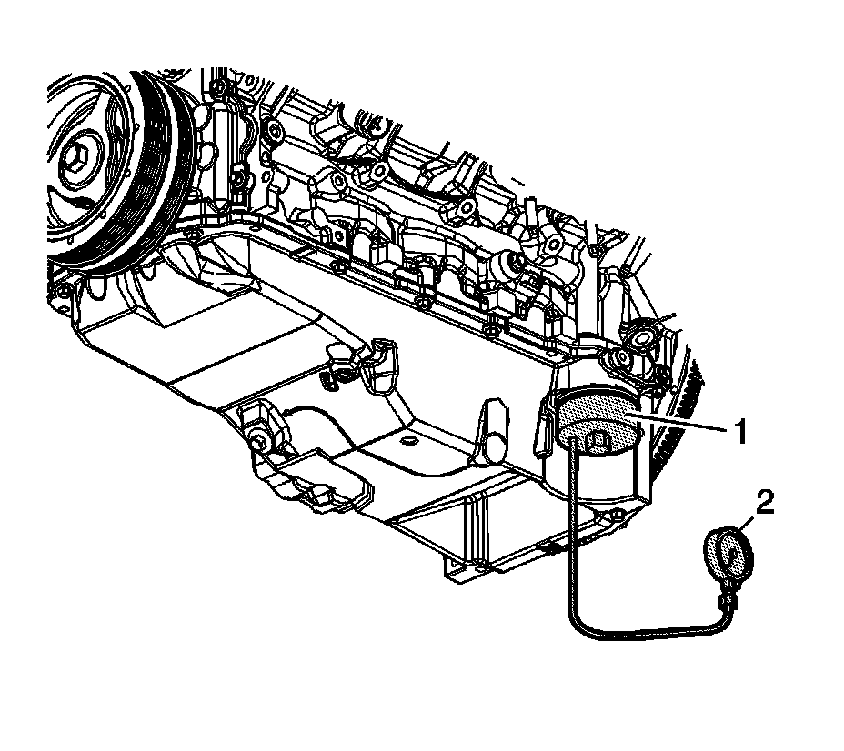 7. Install the J 21867 - gauge (2), or equivalent to the EN-47971 - adapter (1).