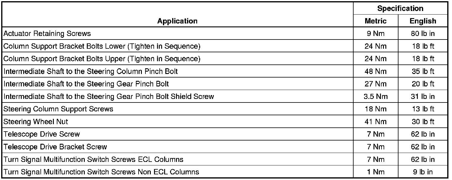 Fastener Tightening Specifications