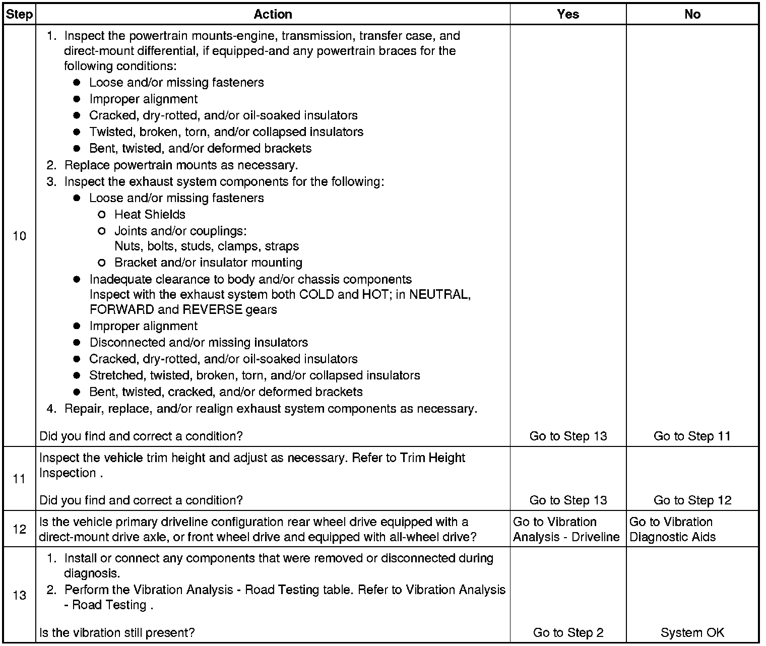 10. Damaged or worn powertrain mounts and/or exhaust mounts may cause a noise or vibration that may be transferred into the passenger compartment.
