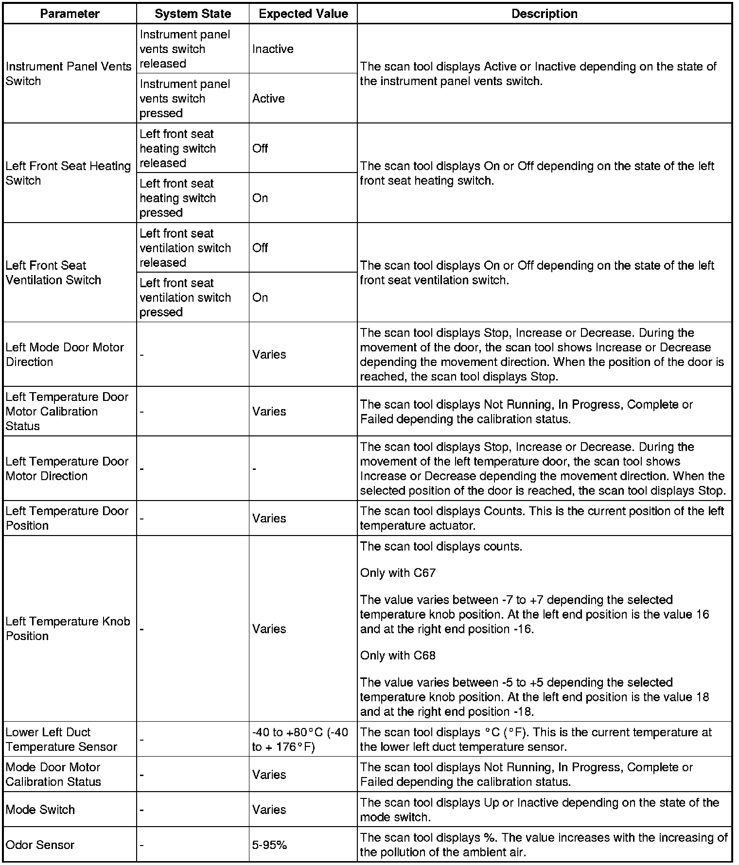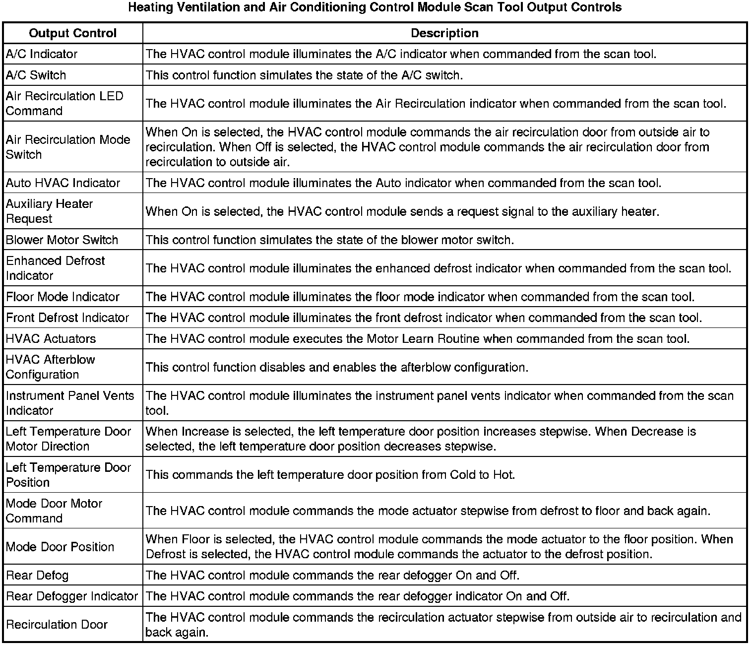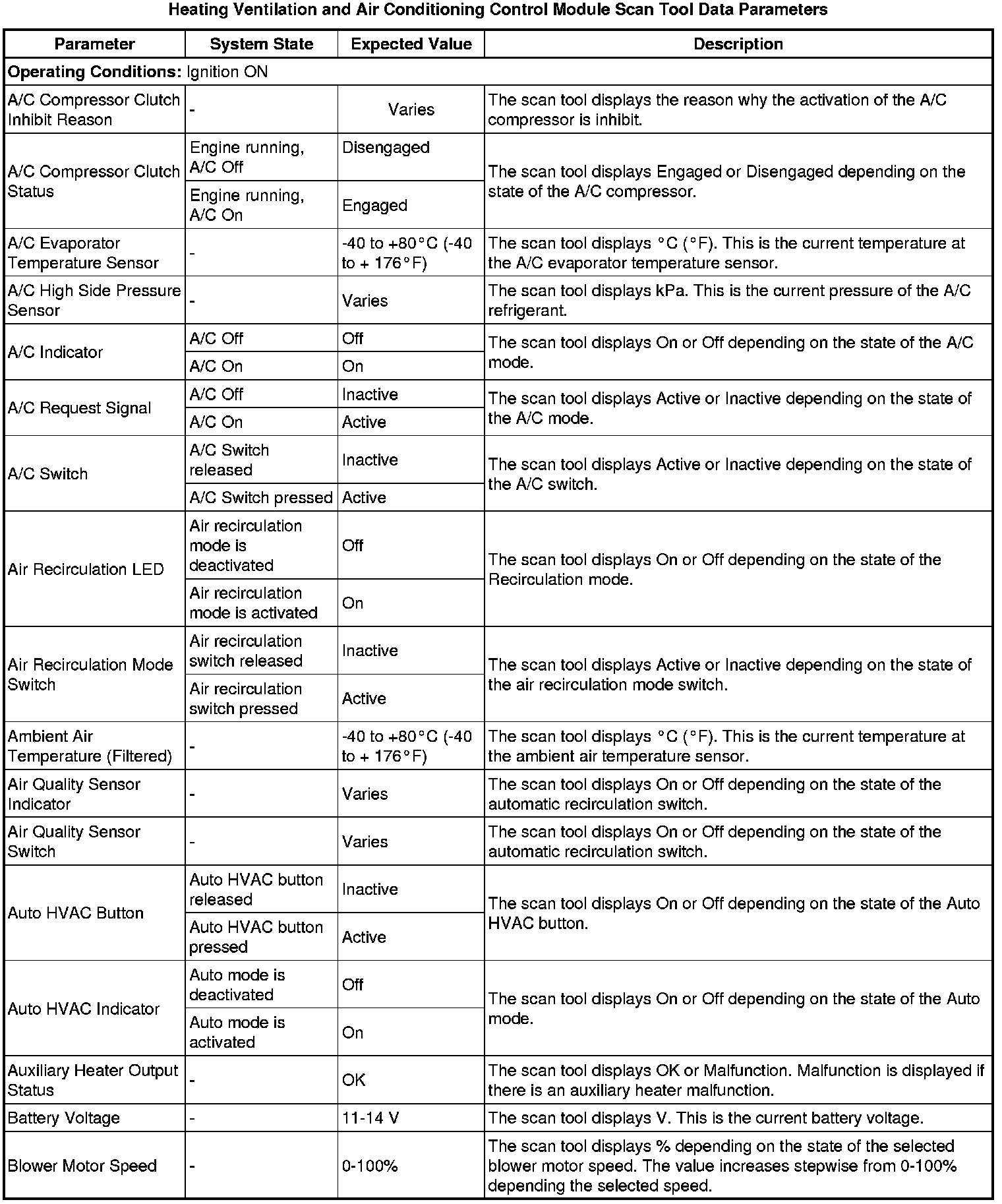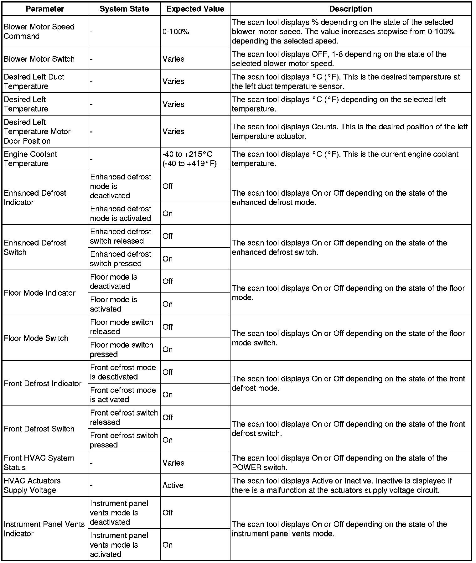 Heating, Ventilation and Air Conditioning Control Module Scan Tool Information