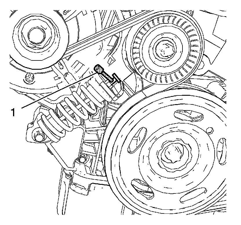 5. Move the drive belt tensioner clockwise until the drive belt tensioner can be fixed with EN-955-2 - locking pin (1).
