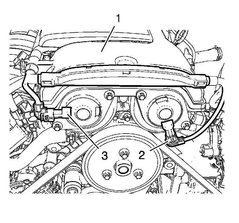 2. Disconnect the intake camshaft position actuator solenoid valve wiring harness plug (3).
