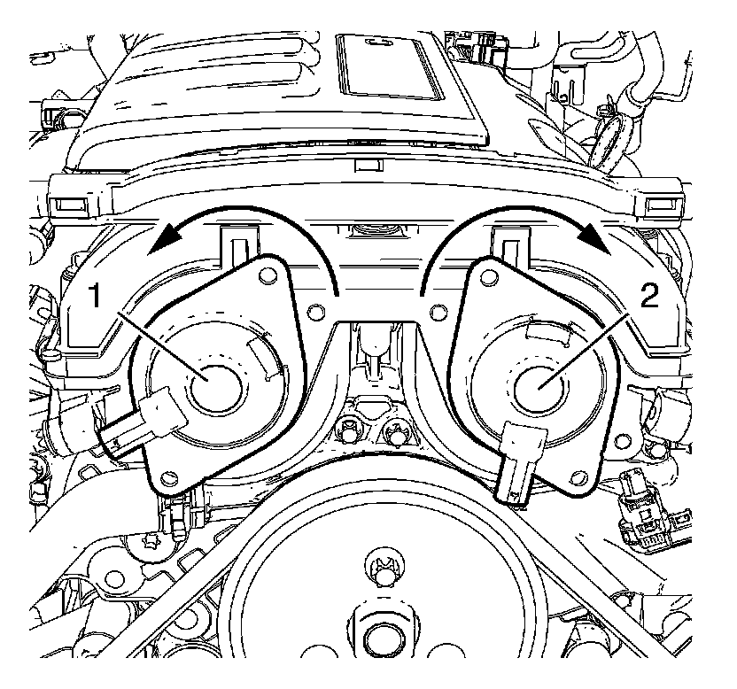 7. Carefully rotate the exhaust camshaft position actuator solenoid valve (2) clockwise as shown.