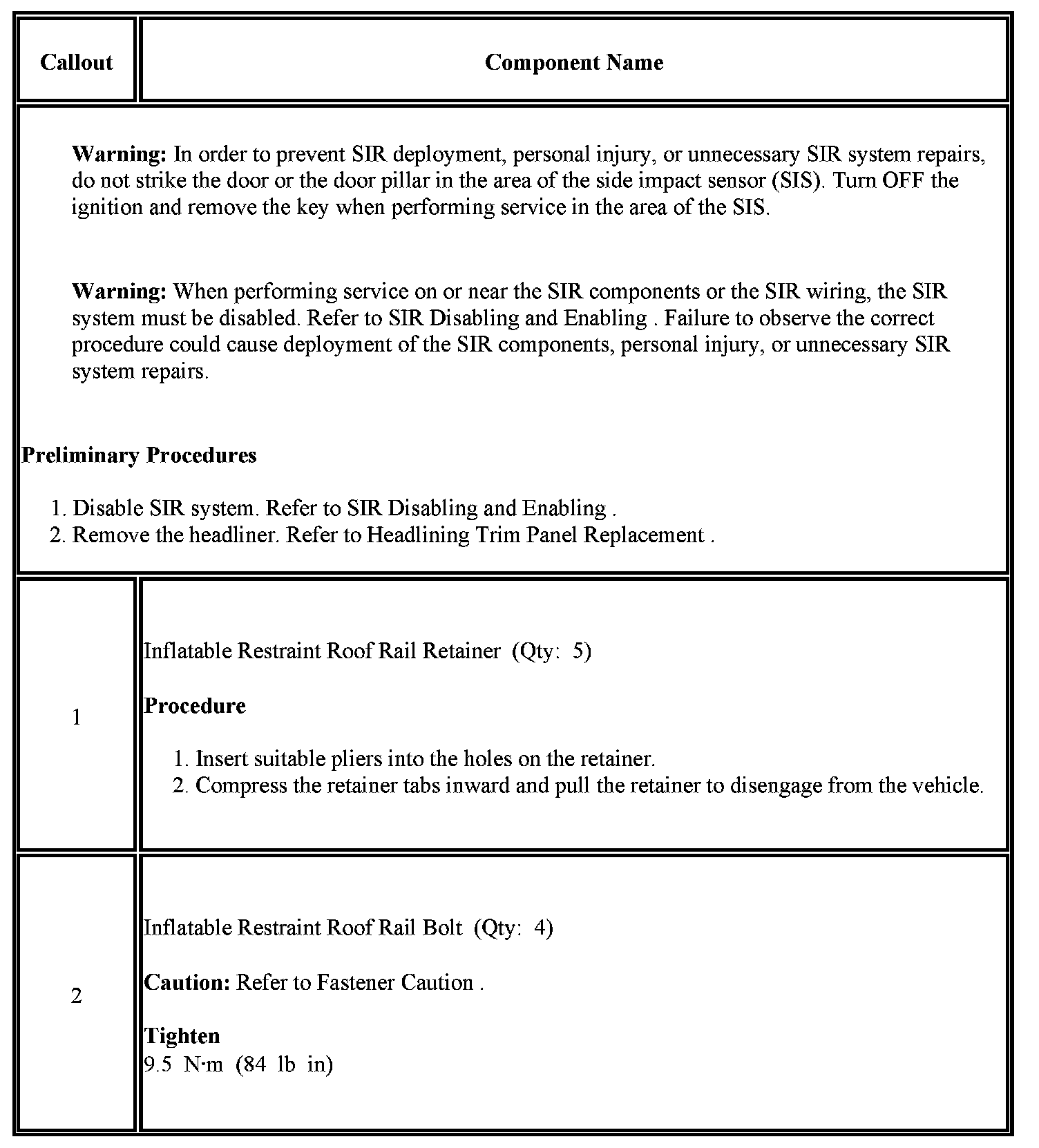 Roof Side Rail Inflatable Restraint Module Replacement