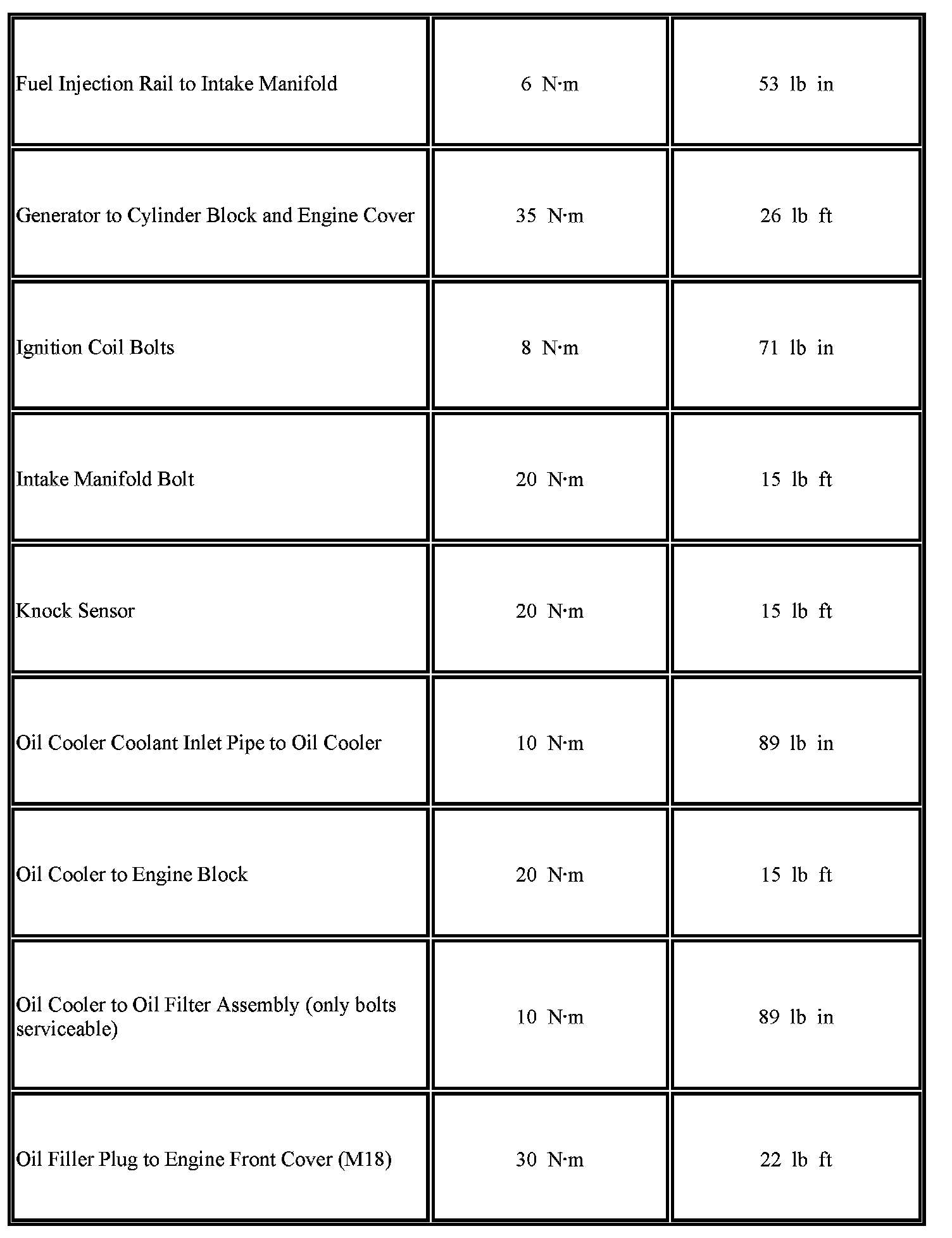 Fastener Tightening Specifications (1.4 LUH, LUJ and LUV)
