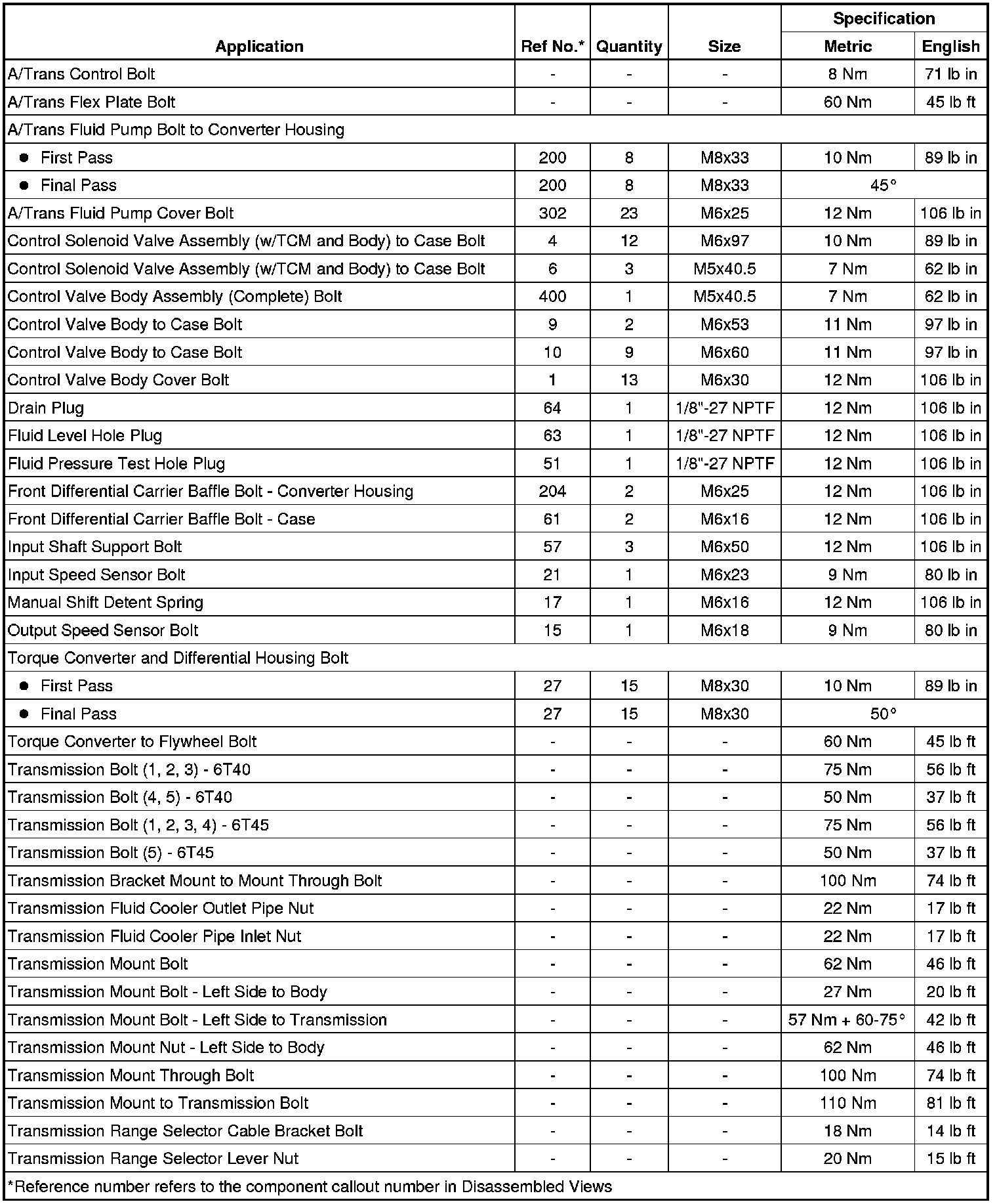 Fastener Tightening Specifications (6T40/45)