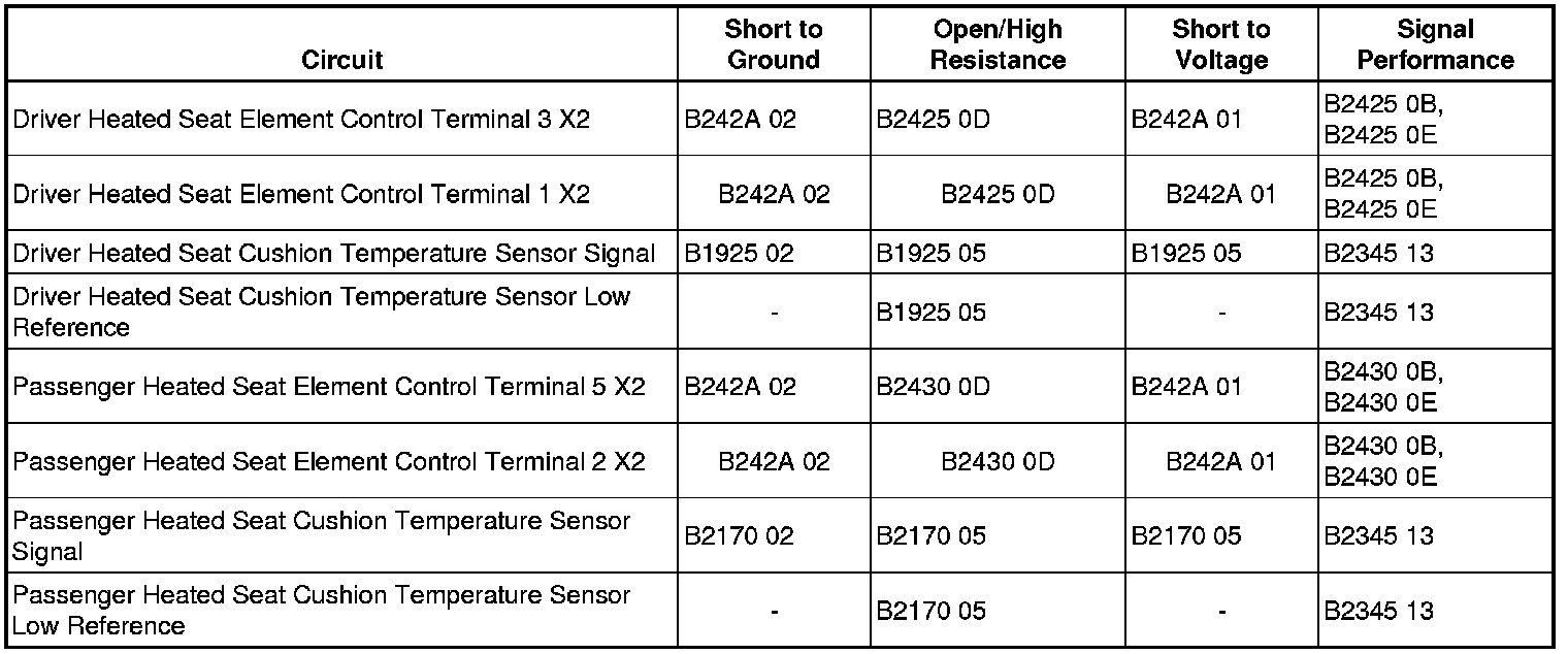 - Passenger Seat Cushion Heater Circuit High Resistance