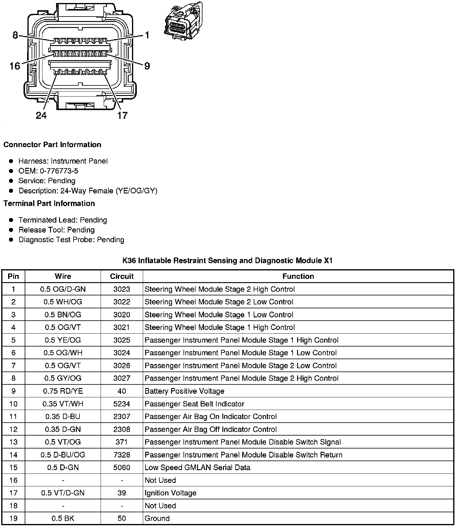K36 Inflatable Restraint Sensing and Diagnostic Module X1
