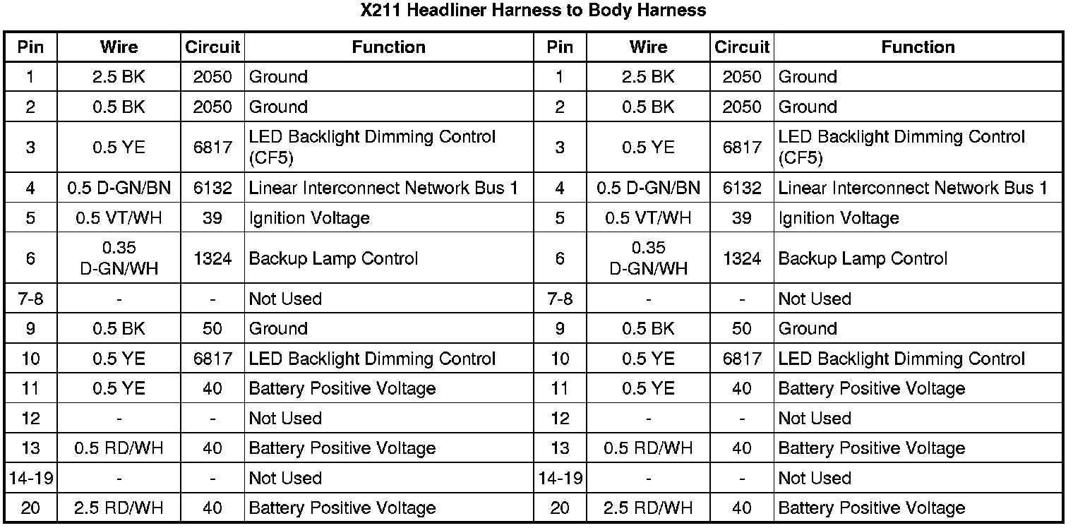 X211 Headliner Harness to Body Harness