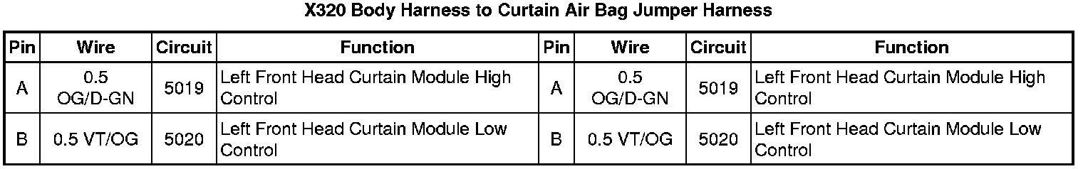 X320 Body Harness to Curtain Air Bag Jumper Harness