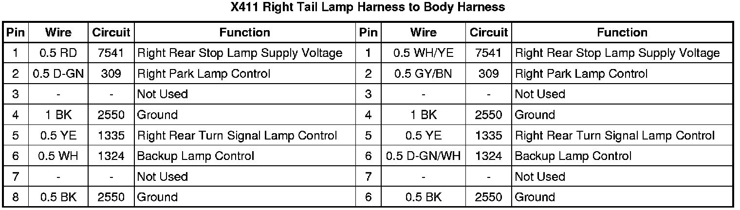 X411 Right Tail Lamp Harness to Body Harness