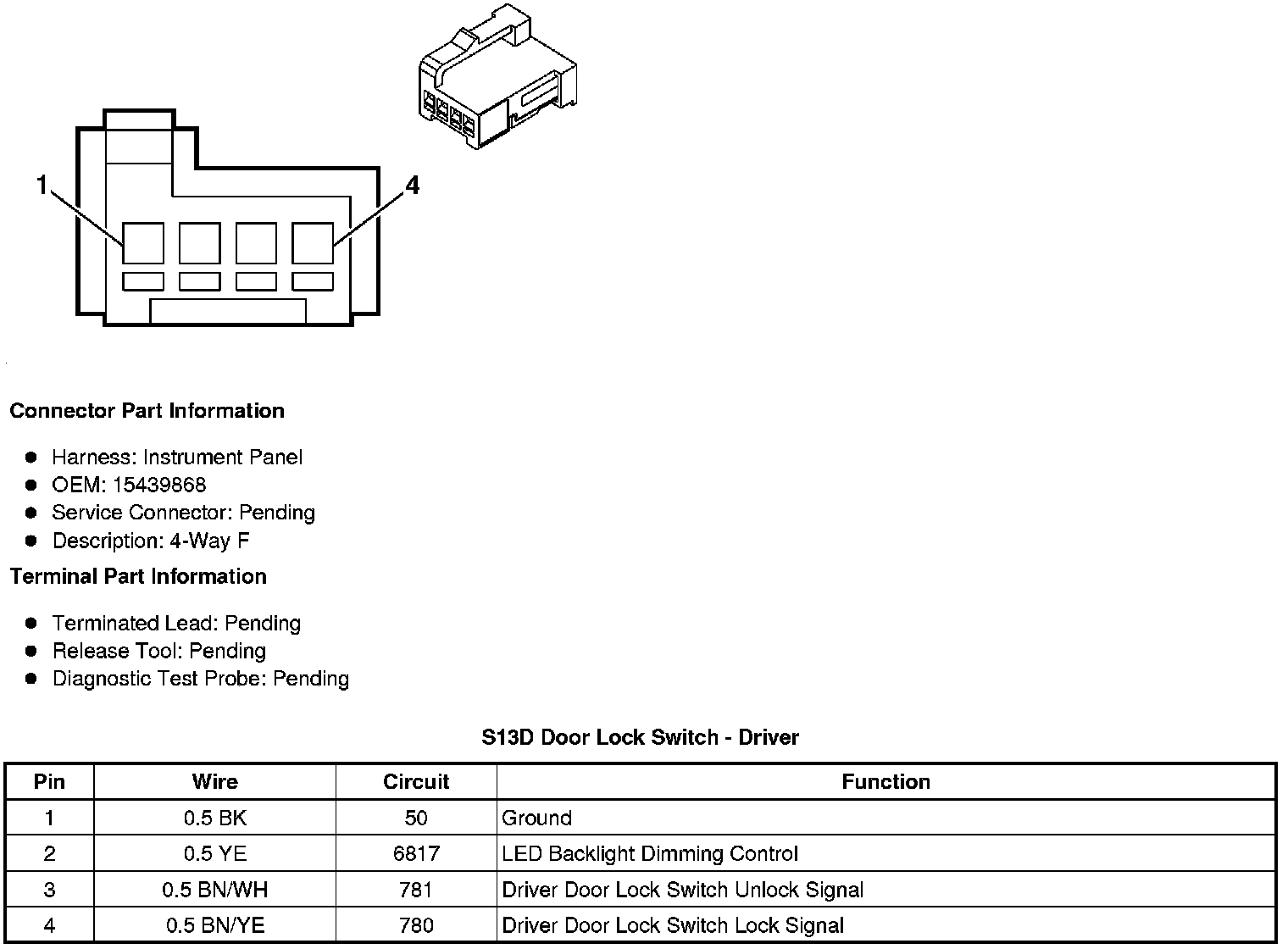 S13D Door Lock Switch - Driver