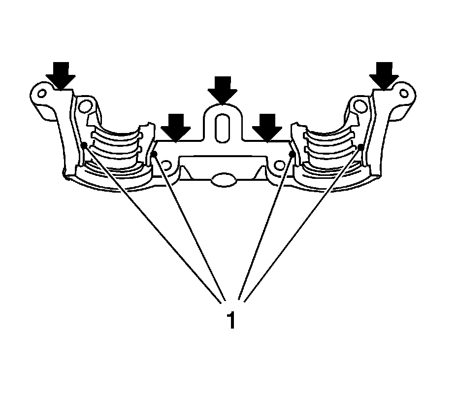 11. Install the first camshaft bearing cap (1) bolts and tighten to 8 Nm (71 lb in).