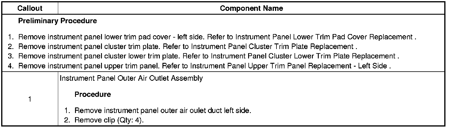 Instrument Panel Outer Air Outlet Replacement - Left Side